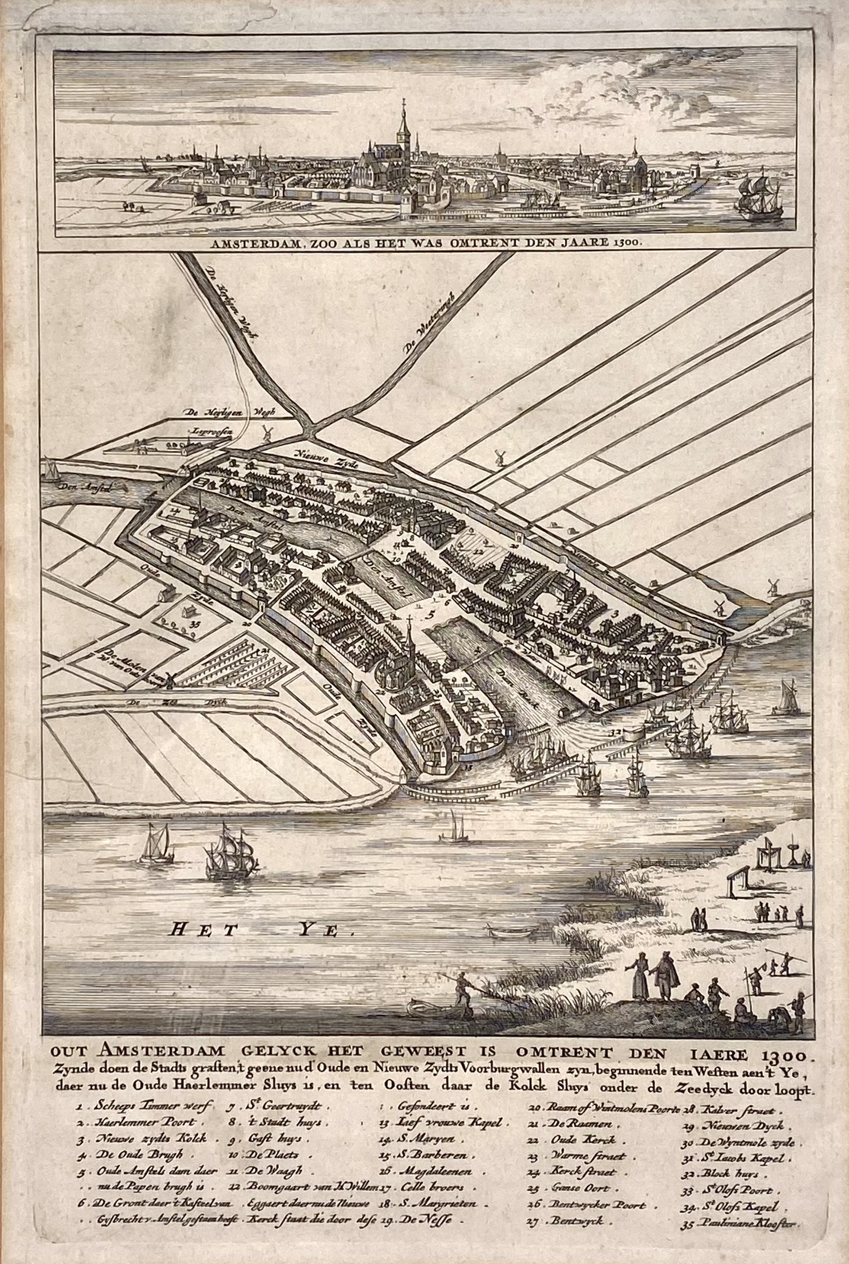 Gravure, Claes Jansz. Visscher – "Out Amsterdam rond 1300", 1663-1664