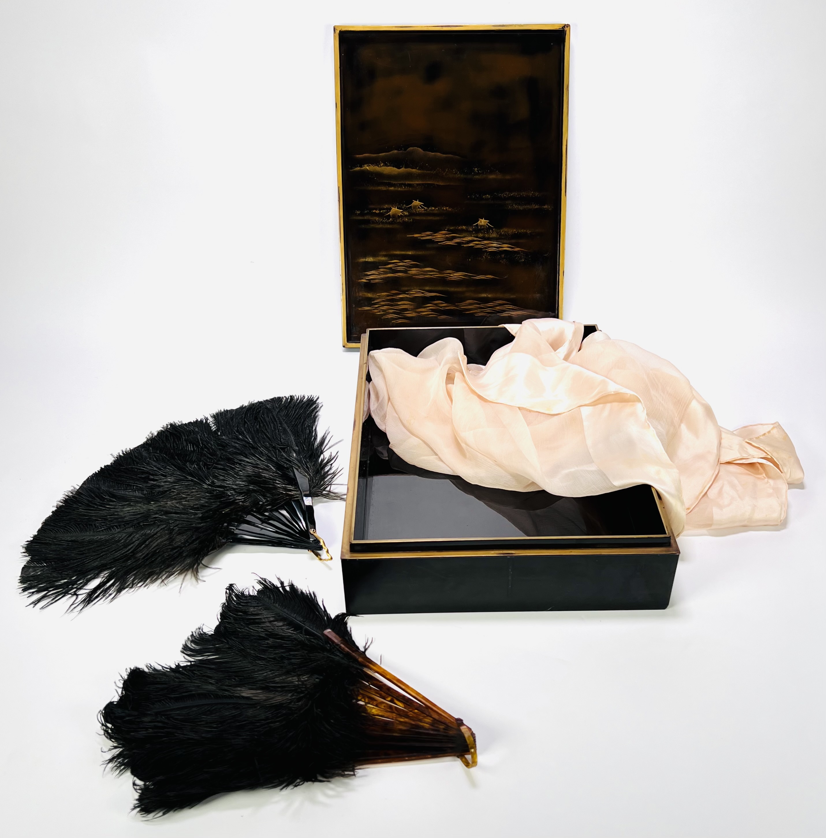 Lakwerkdoos, maki-e landschap en waaiers, Meiji periode, Japan