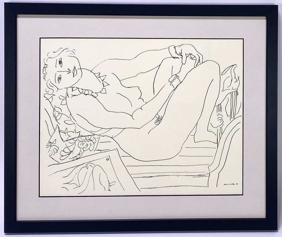 Litho naar de Franse kunstenaar Henri Matisse (1869–1954) in de stijl van het modernisme. Dit werk, uitgevoerd in lithografische inkt op papier, is gedrukt in 1992 als een postume editie uit Cahiers d'Art. De voorstelling is een naaktfiguur weergegeven met de beroemde, gereduceerde contourlijnen van Matisse uit 1936. De signatuur 'Henri Matisse 36' is in de plaat opgenomen. Deze litho zelf beoordelen? Je bent welkom op onze kijkdagen op 28, 29 en 30 november! |