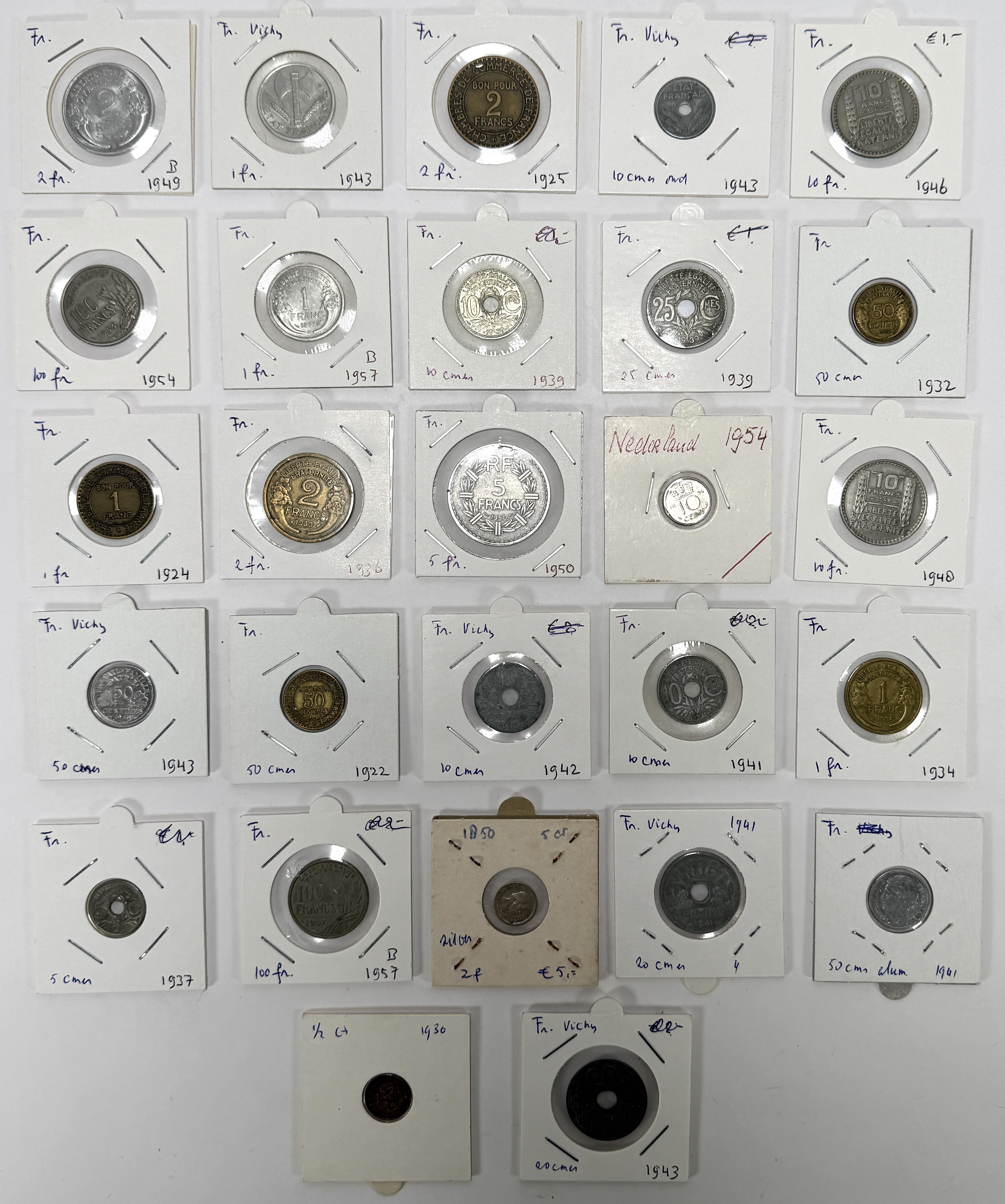 Munten collectie, Frankrijk/Nederland, tweede helft 20e eeuw