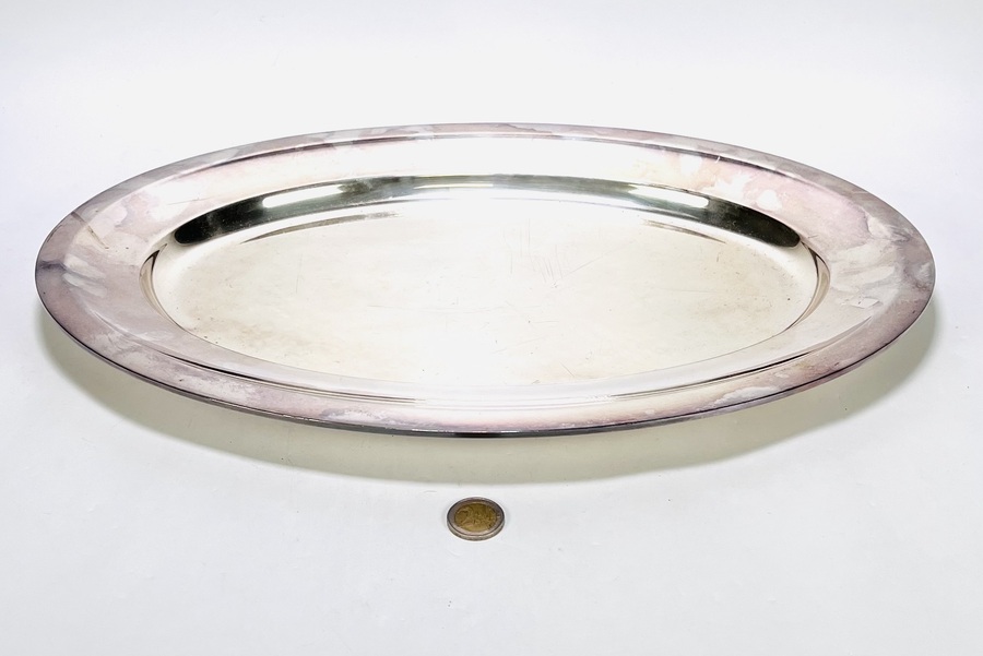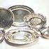 Lot pleet schalen en dienbladen, vervaardigd door galvanisatie, late 19e tot midden 20e eeuw. De stijlen variëren van neoklassiek, met strakke ronde en ovale vormen, tot rococo-revival, zoals de schaal met rijk reliëfdecoratie. |