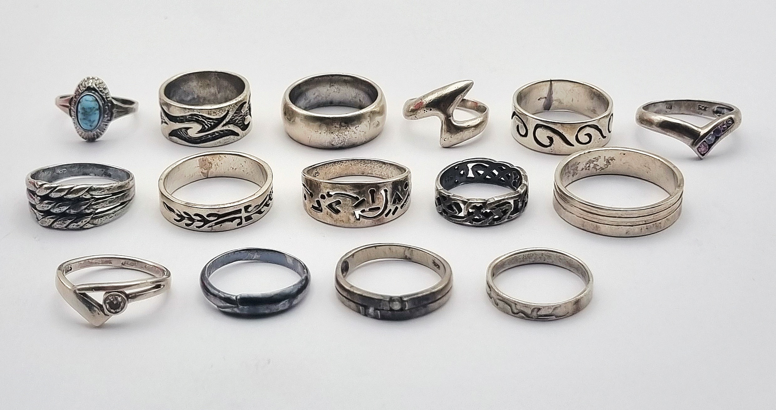 Diverse lot van vijftien zilveren ringen, gedateerd circa 1975–2000, met tribale, klassieke en moderne stijlen. Wil je direct deelnemen? Plaats vanaf 21 november alvast een schriftelijk bod via onze website! |