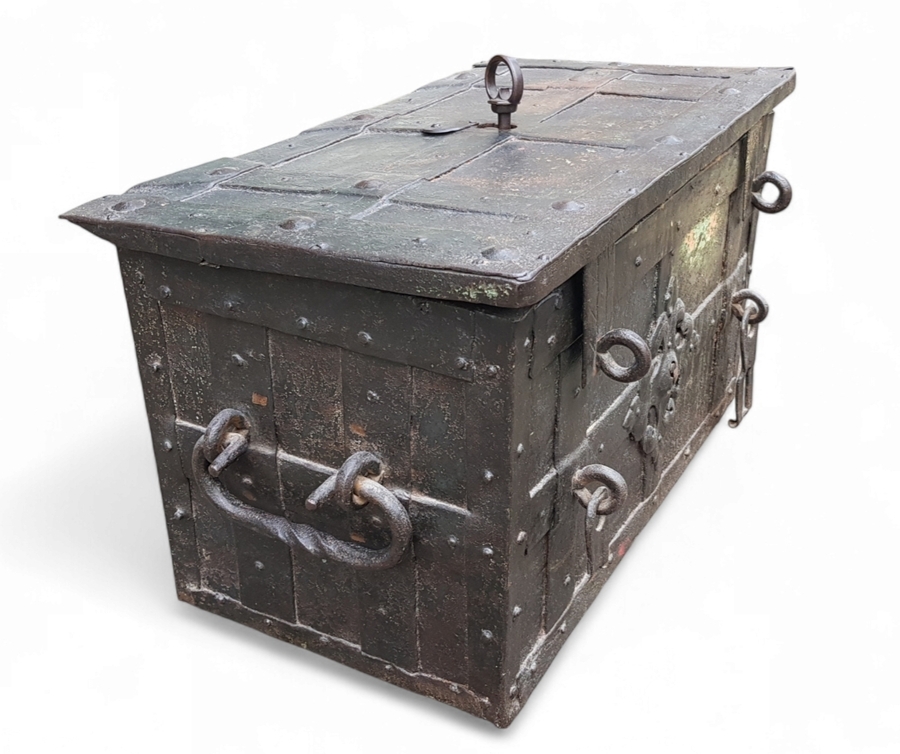 | Kavelnummer en naam | 900. IJzeren geldkist met gegraveerd slotmechanisme - Renaissance, eerste helft 17e eeuw | |