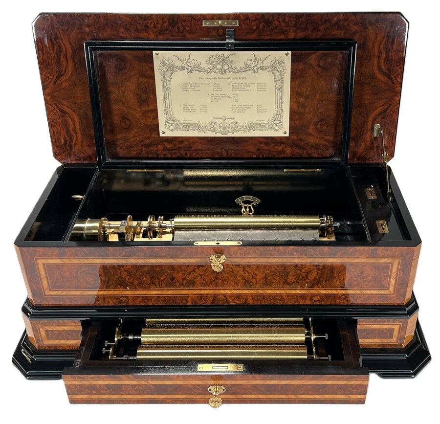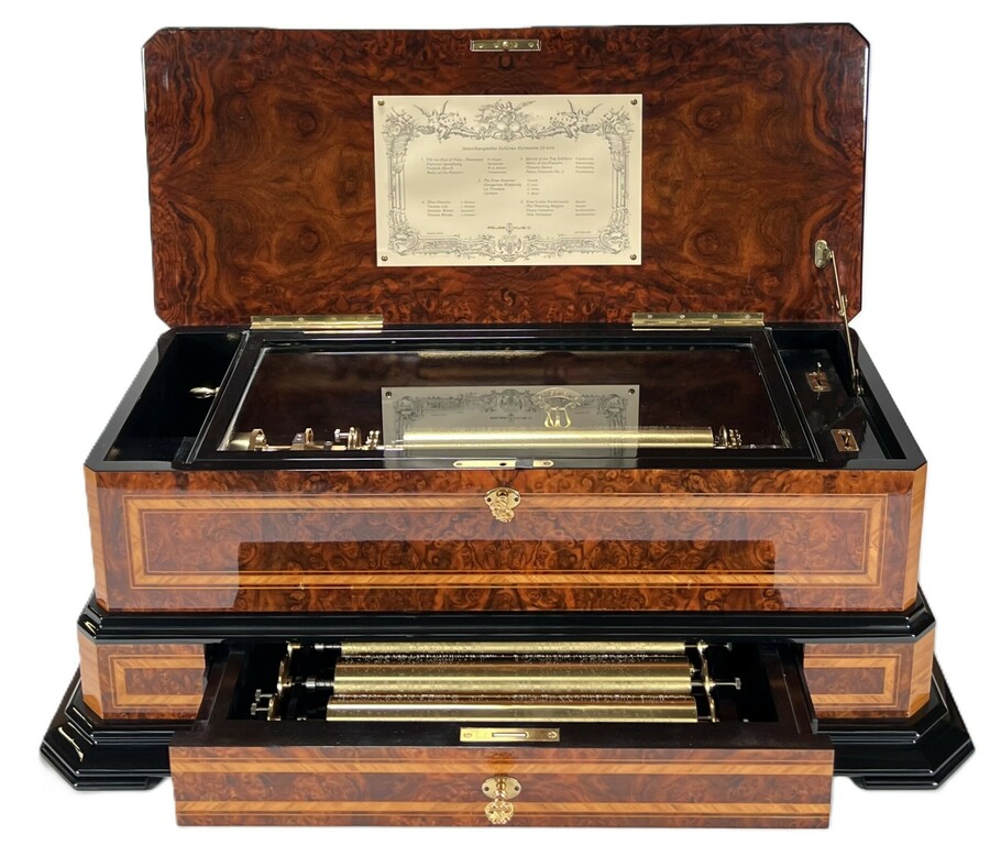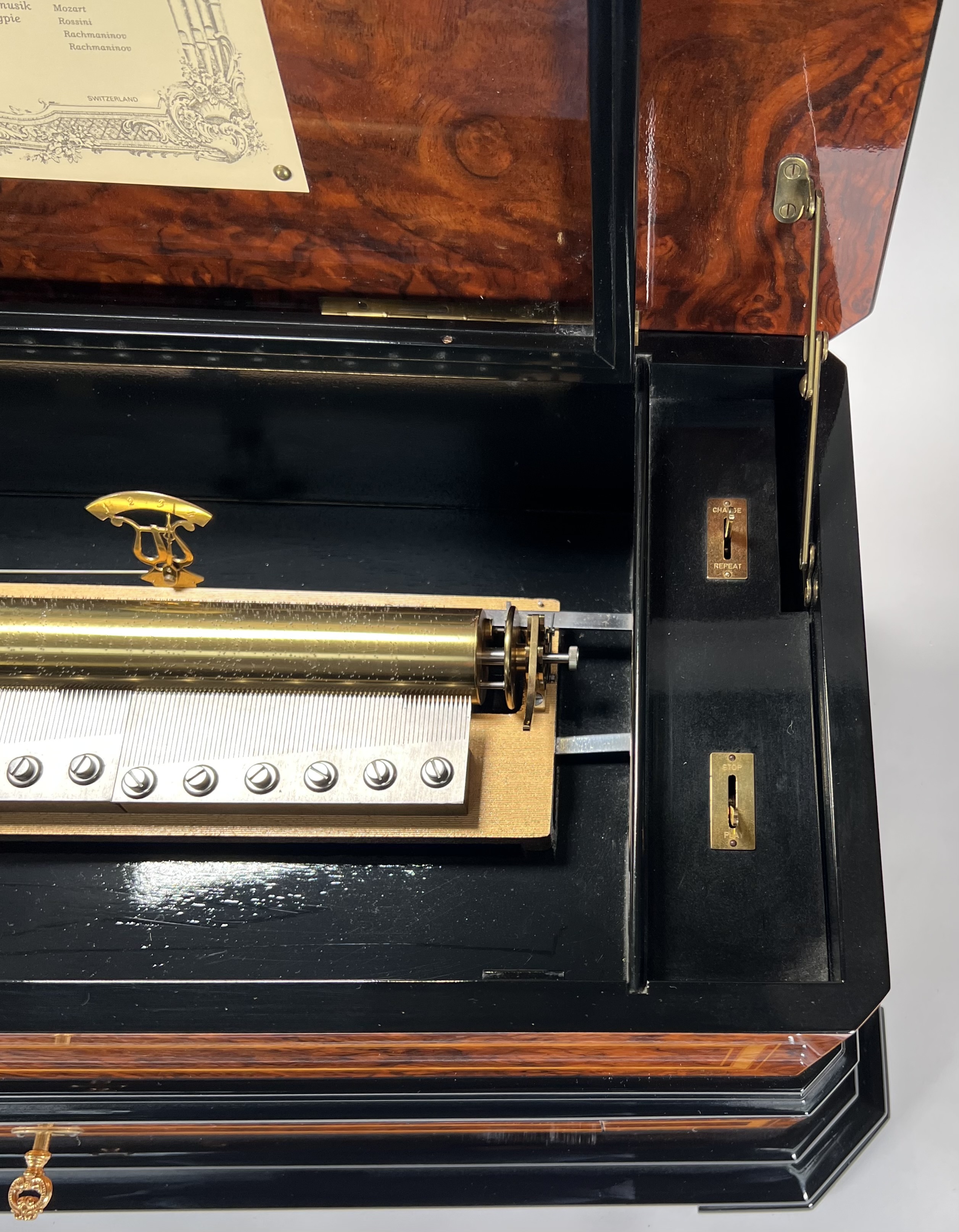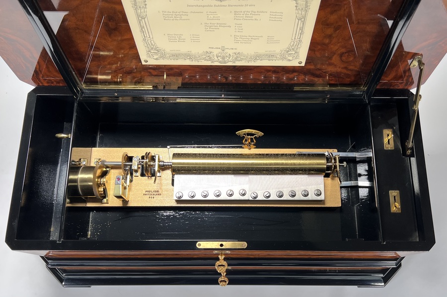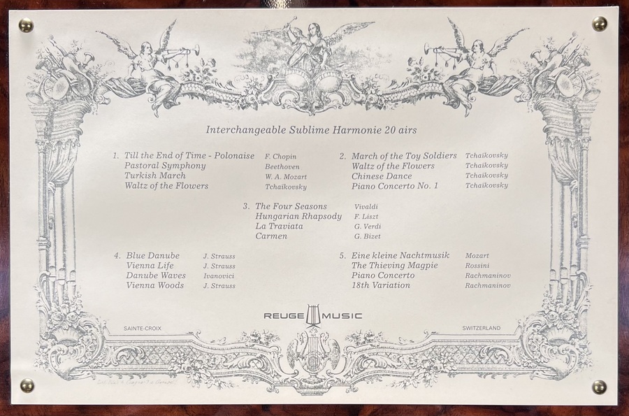 Muziekdoos, Reuge "Music Grand Cartel", Sainte-Croix Zwitserland – 144-noot "Sublime Harmonie"