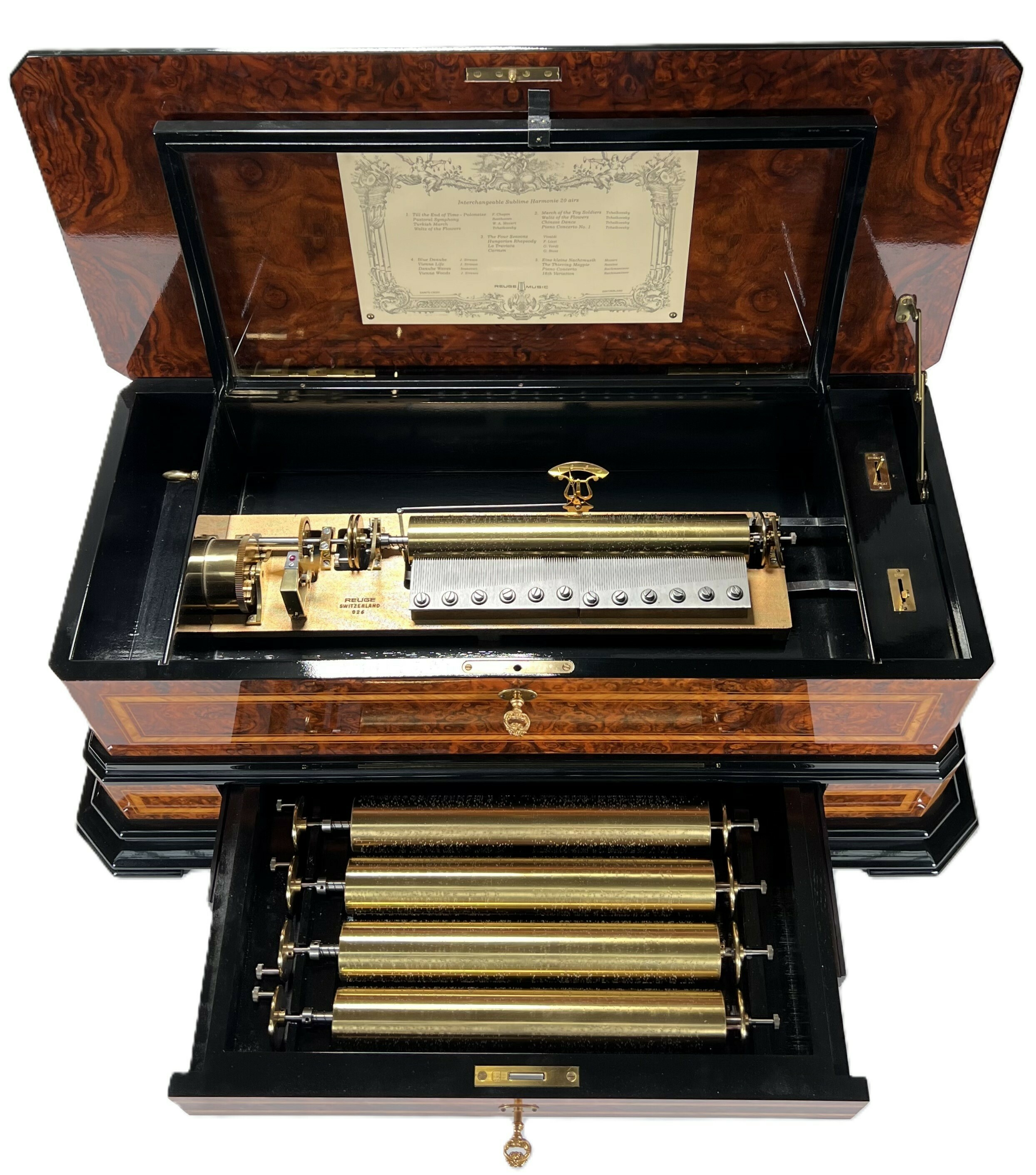 | Kavelnummer en naam | 501. Muziekdoos, Reuge "Music Grand Cartel", Sainte-Croix Zwitserland – 144-noot "Sublime Harmonie" | |