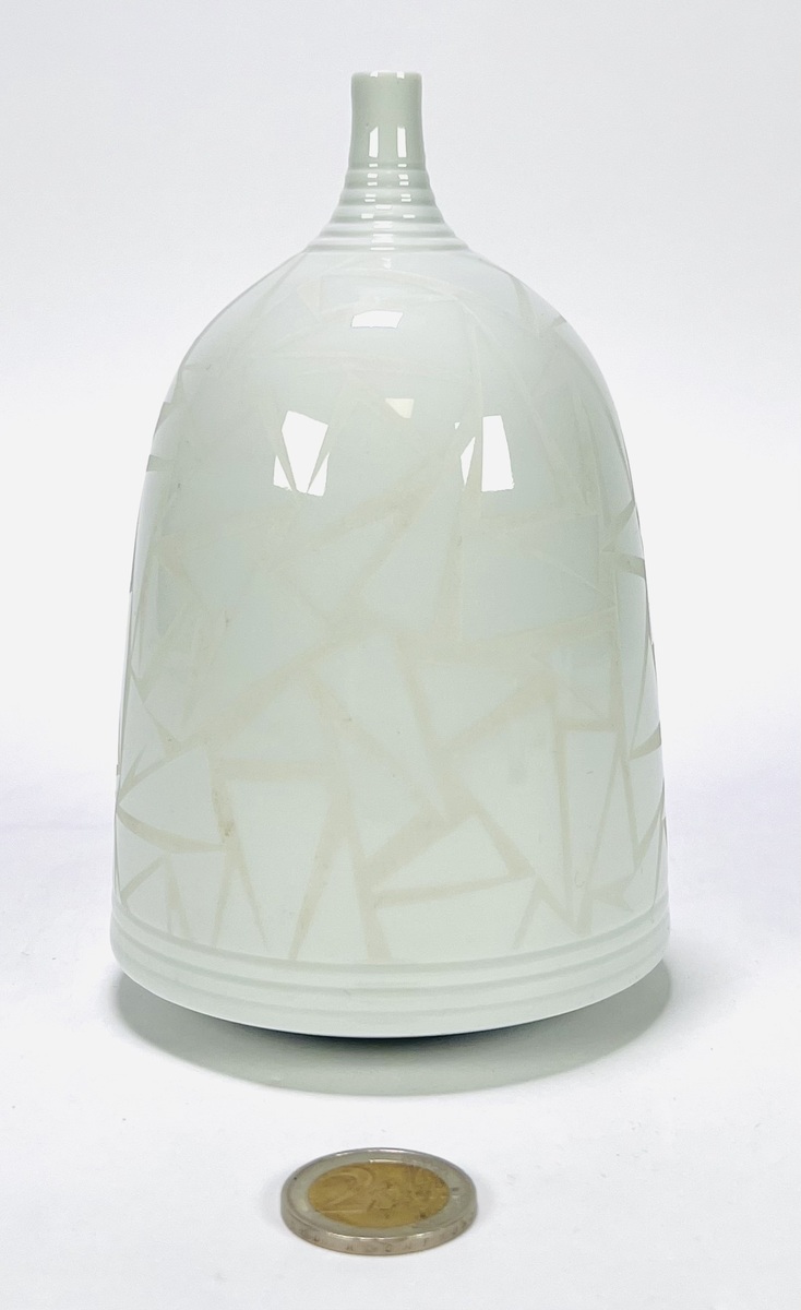 Keramische vaas door Horst Göbbels (1936) gedateerd late 20e eeuw in modernistische stijl. Het kunstobject heeft een glanzend en mat glazuur in geometrisch patroon van driehoeken en een bolvormig corpus en een smalle hals. Gesigneerd aan de onderzijde. Je bent welkom op onze kijkdagen op 28, 29 en 30 november! |
