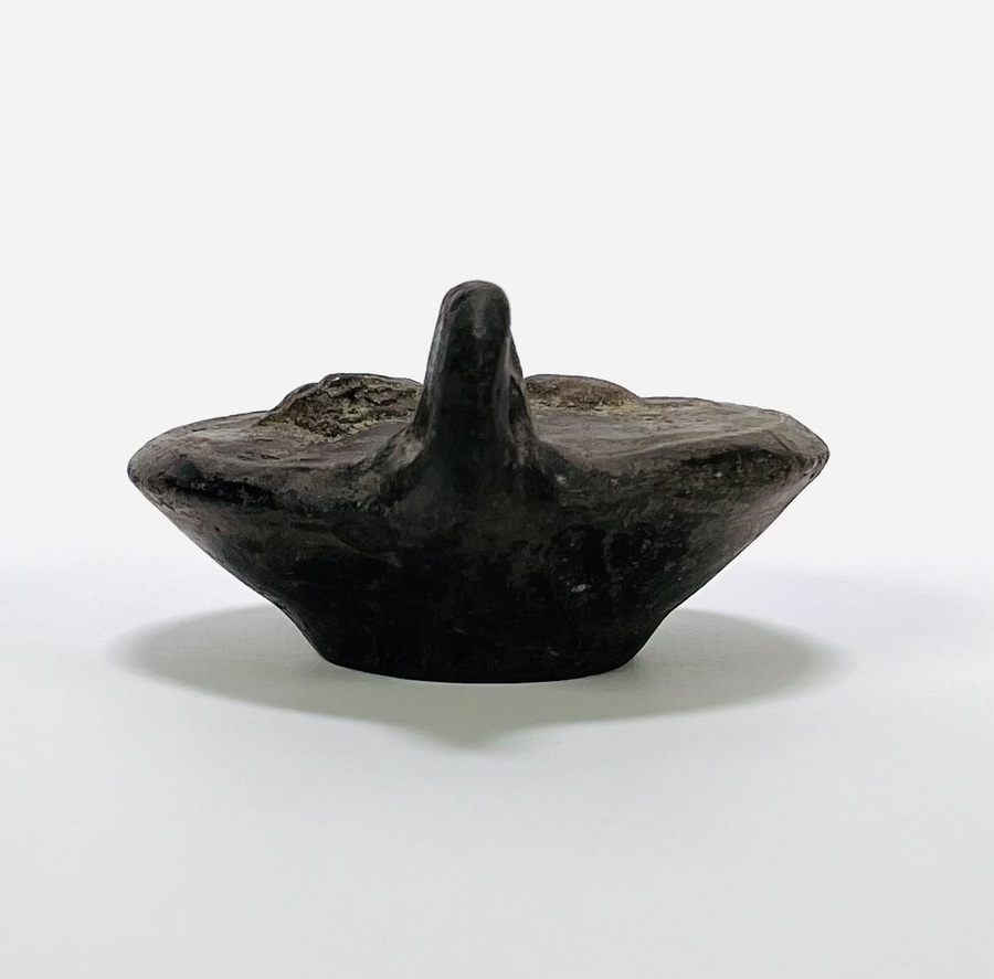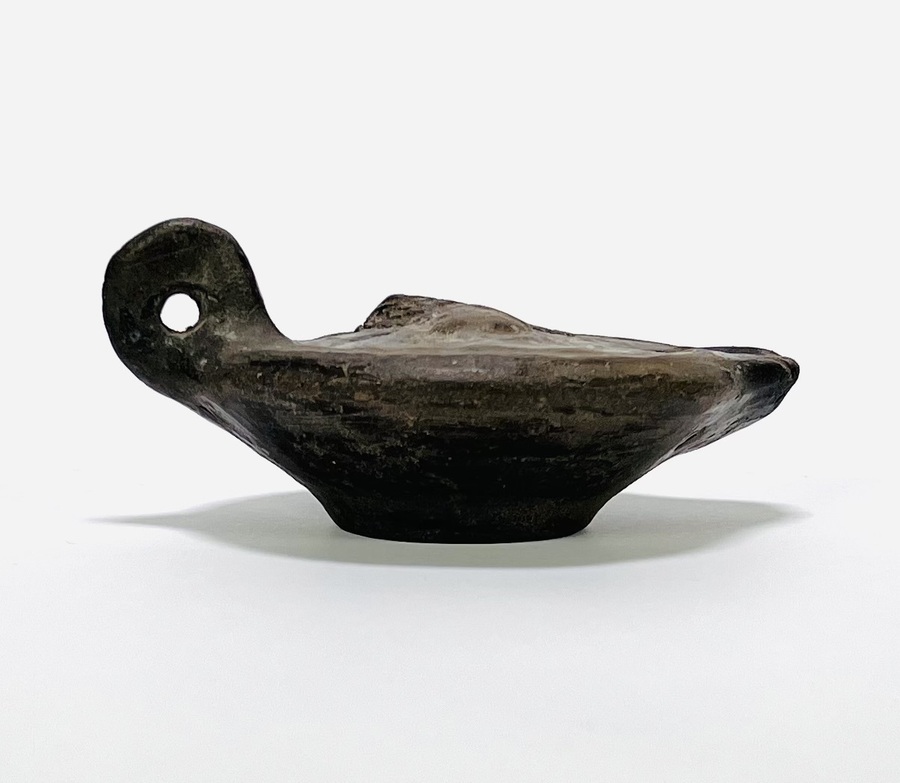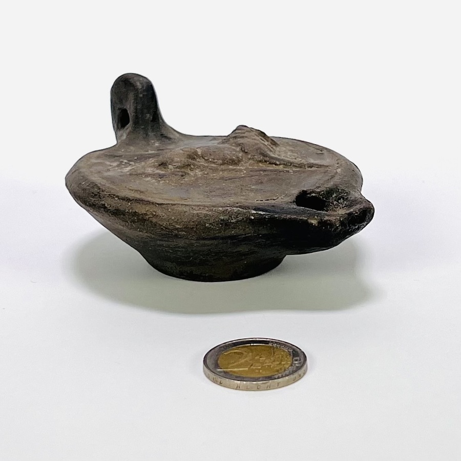 Olielamp, handgevormd en gebakken, met een donkere slibafwerking. De lamp heeft een ovale, bootvormige kom met een tuit voor de pit en een doorboorde, halfronde handgreep. De stijl is klassiek archaïsch en dateert uit de hellenistische tot vroeg Romeinse periode (derde eeuw v. Chr. – eerste eeuw n. Chr.). De lamp heeft een waarschijnlijke herkomst uit het Oostelijk Middellandse Zeegebied. De olielamp zelf beoordelen? Je bent welkom op onze kijkdagen op 28, 29 en 30 november! |