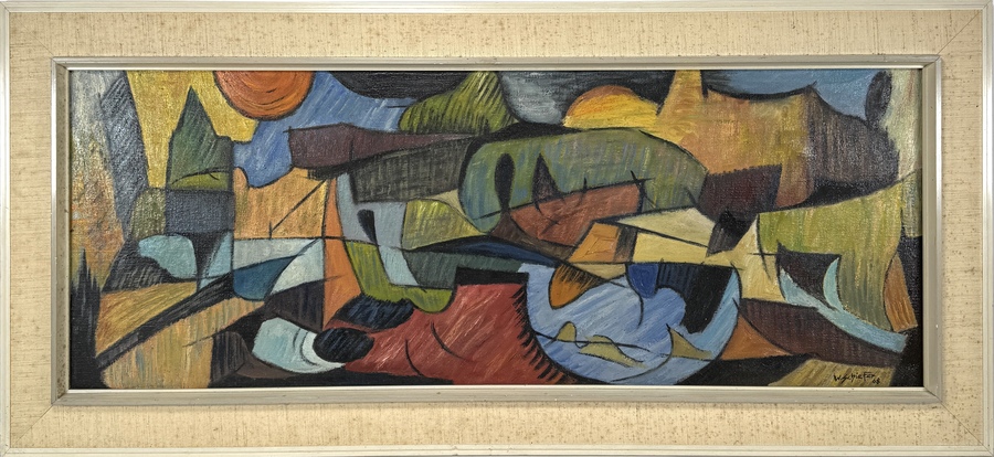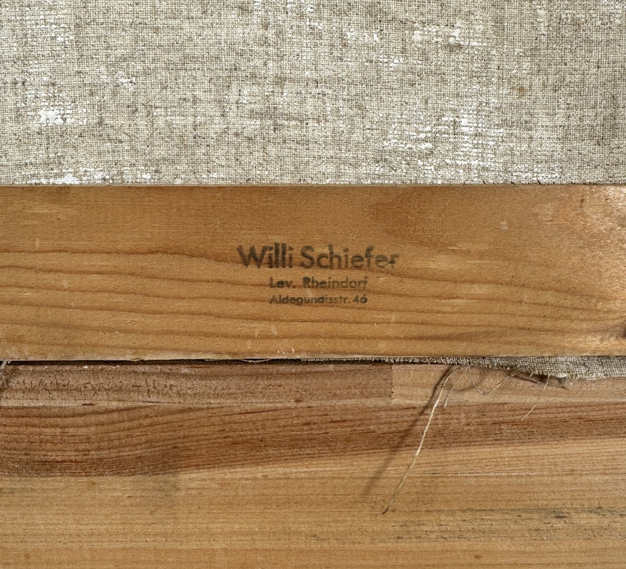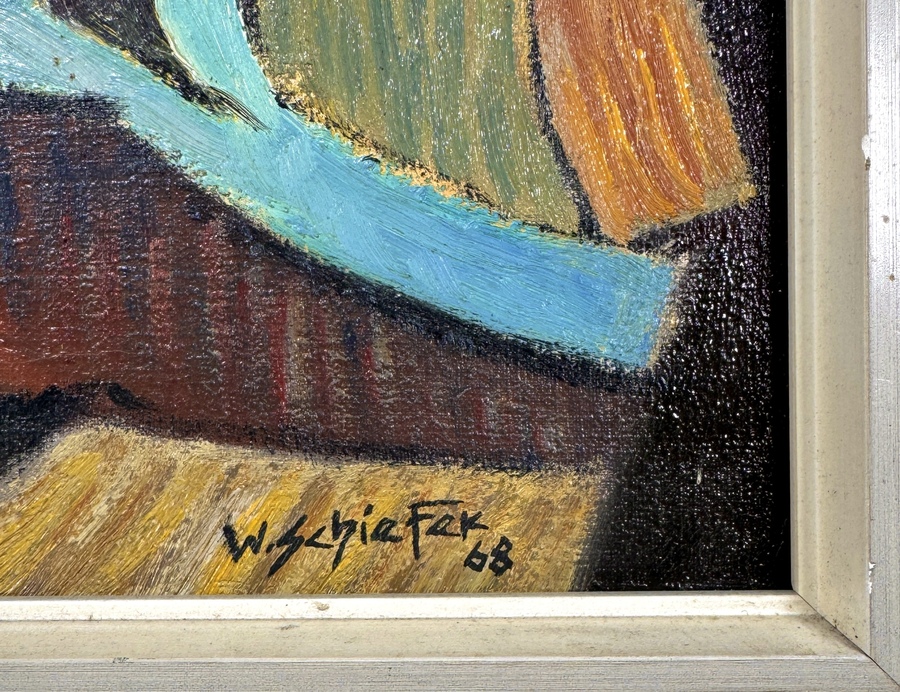 Olieverfschilderij op doek van de kunstenaar Willi Schiefer, gesigneerd en gedateerd 1968 rechtsonder. Het werk is uitgevoerd in een lyrisch-abstracte stijl, kenmerkend voor de Centraal-Europese abstracte kunst van de late jaren 60. De compositie bestaat uit gefragmenteerde geometrische vormen met een rijk aards kleurenpalet en opvallende blauwe en oranje accenten. Wil je direct deelnemen? Plaats vanaf 21 november alvast een schriftelijk bod via onze website! |