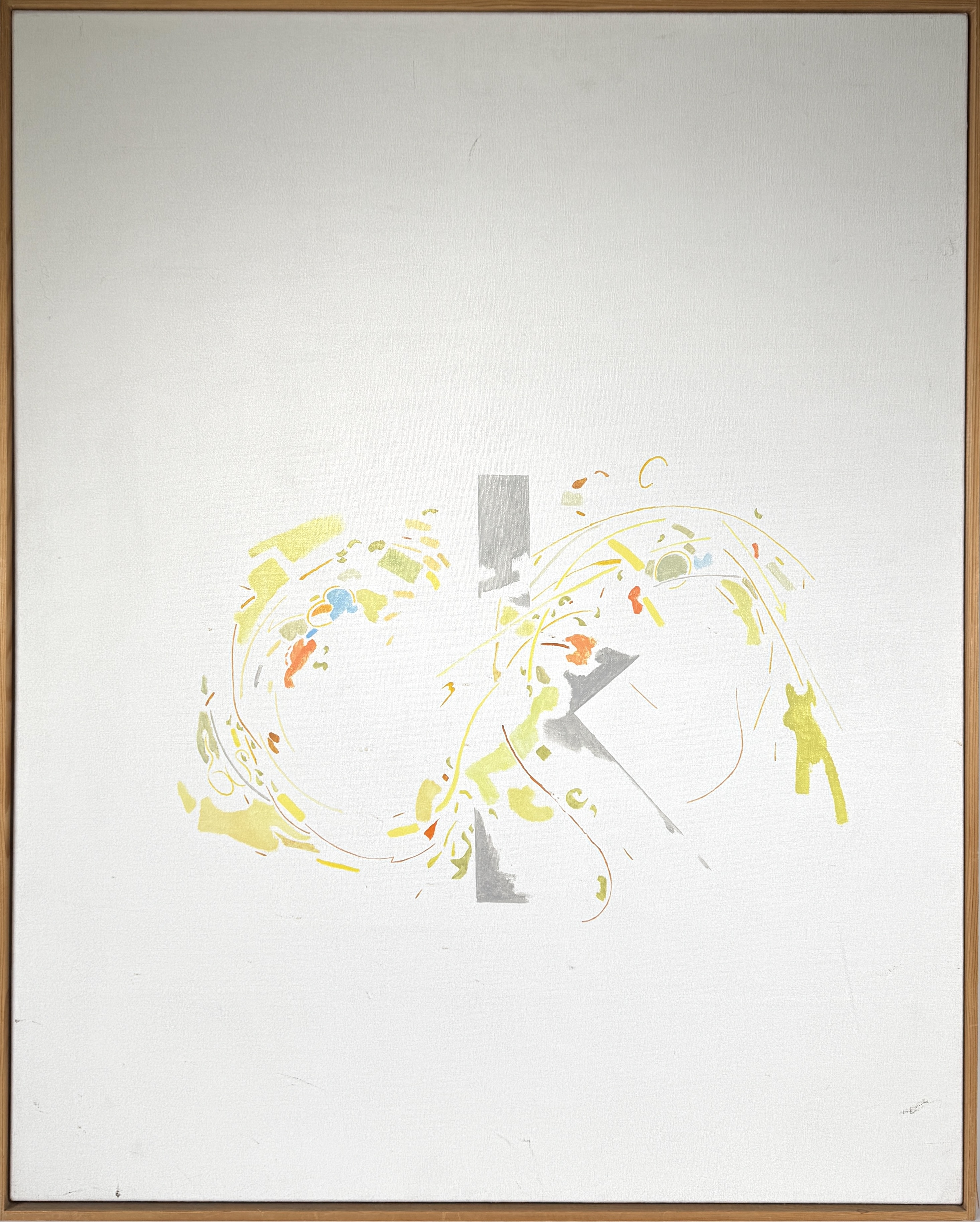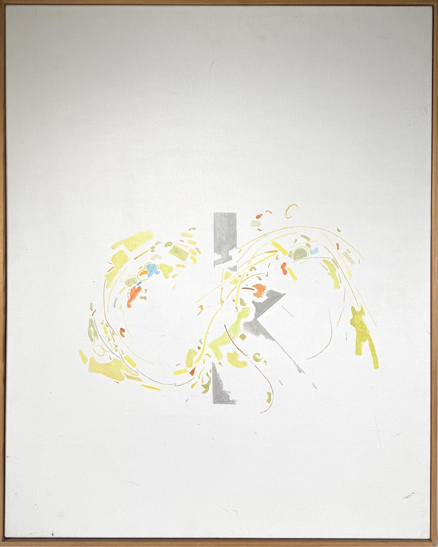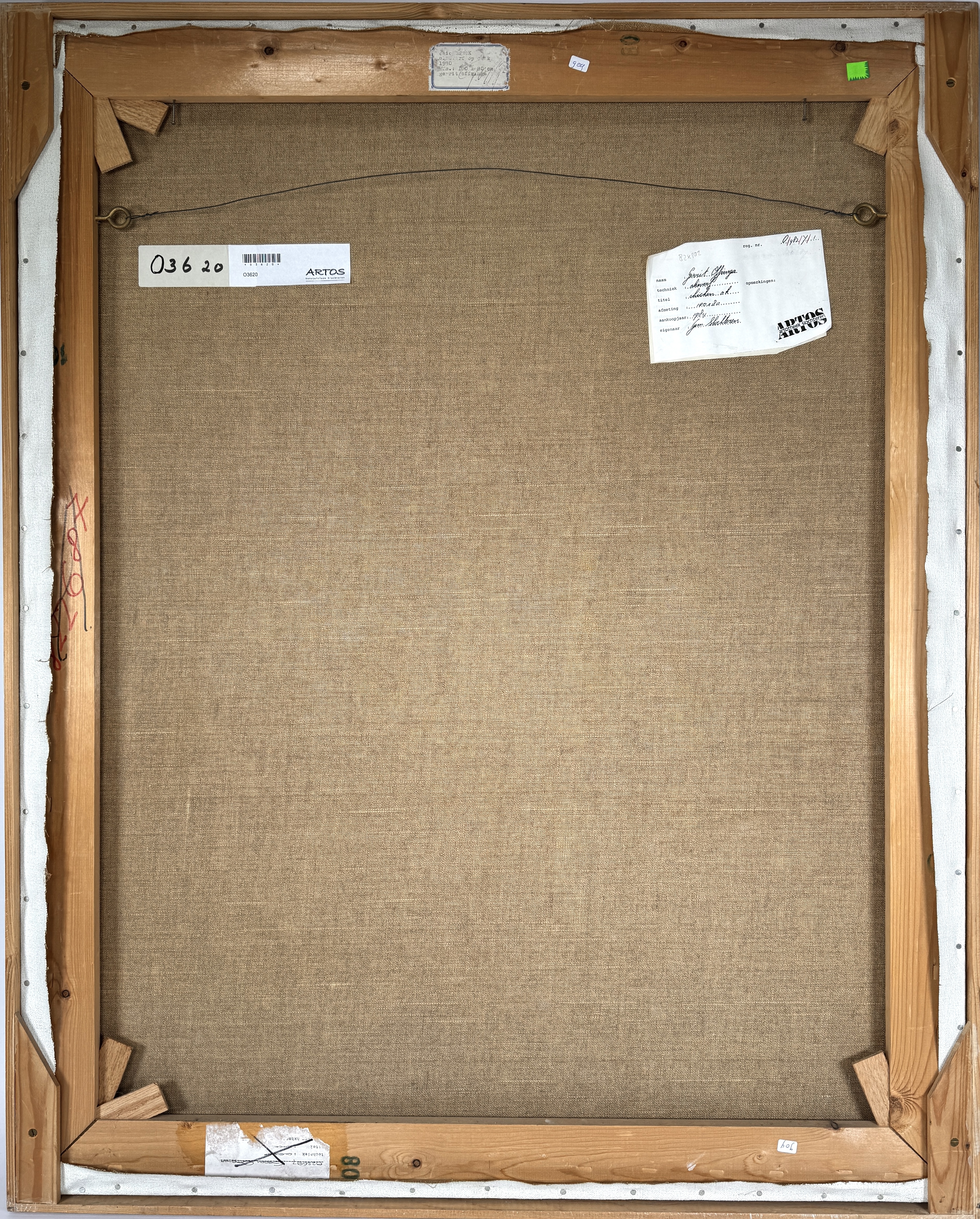 Schilderij op doek van de Nederlandse schilder Gerrit Offringa (1943–2019), olieverf op doek, getiteld “chicken ok”. Het werk uit 1980 in geometrisch abstracte stijl is gedocumenteerd door Artotheek Slochteren. De compositie wordt gedomineerd door fijne, okergele lijnvoering en organische kleurvlakken rond centrale grijze vormen. Verso signatuur en informatie. Klaar om te bieden? Registreer je nu en doe mee aan de veiling! |