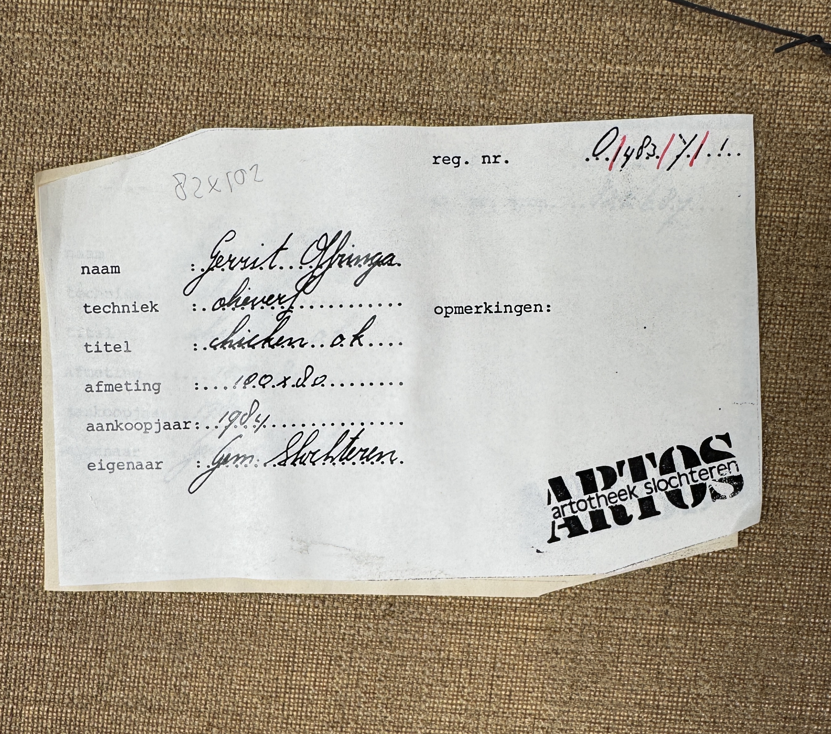 | Kavelnummer en naam | 624. Olieverfschilderij, Gerrit Offringa - “chicken ok”, 1980 | |