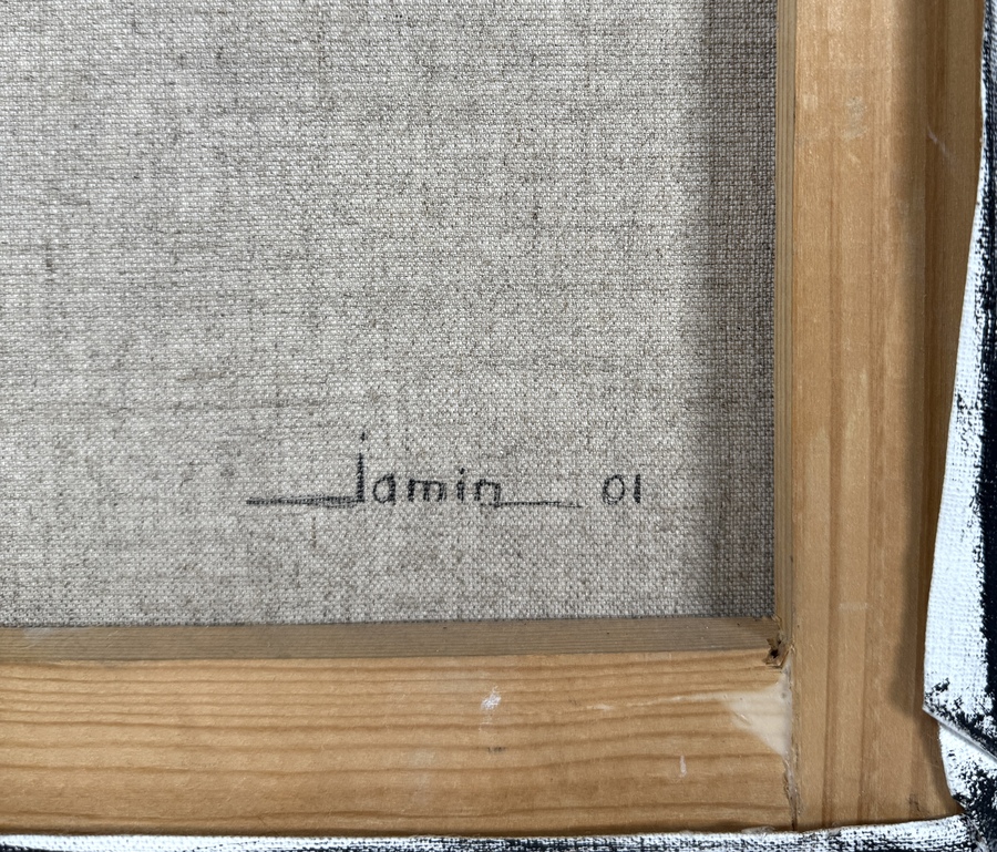 Schilderij door Jamin, gedateerd 2001, uitgevoerd in olieverf op doek en getiteld "Who is who". Het werk toont een abstract-figuratieve groepering van hoofden in een schematische, vervaagde stijl. De compositie uit de begin 21e eeuw wordt gekenmerkt door een somber kleurenpalet van zwart, grijs en blauw. Verso signatuur en datering. Geïnteresseerd? Bezoek onze kijkdagen op 28, 29 of 30 november van 11:00 tot 17:00 uur! |