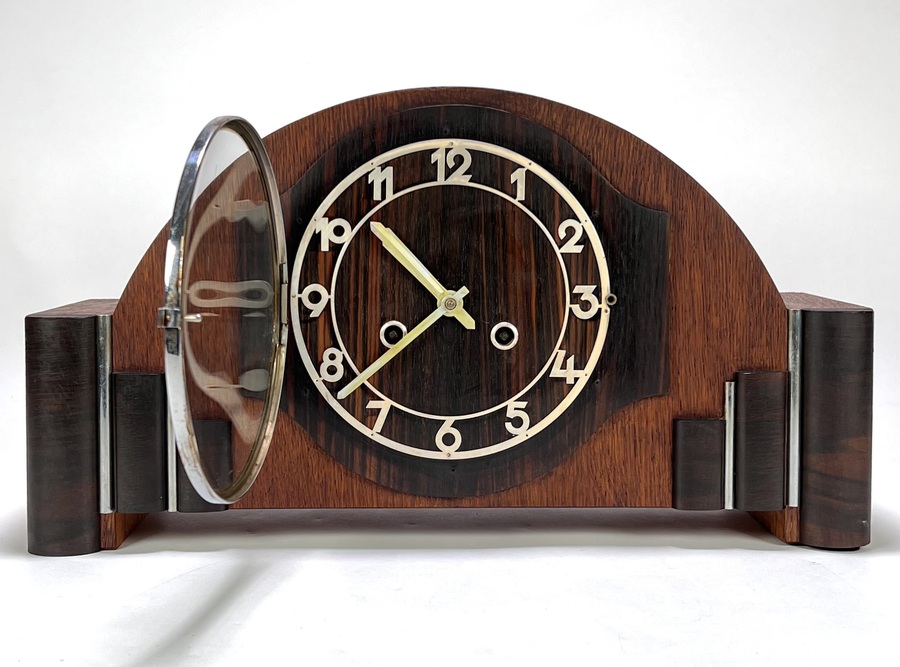 Houten Art Deco pendule, eerste helft 20e eeuw