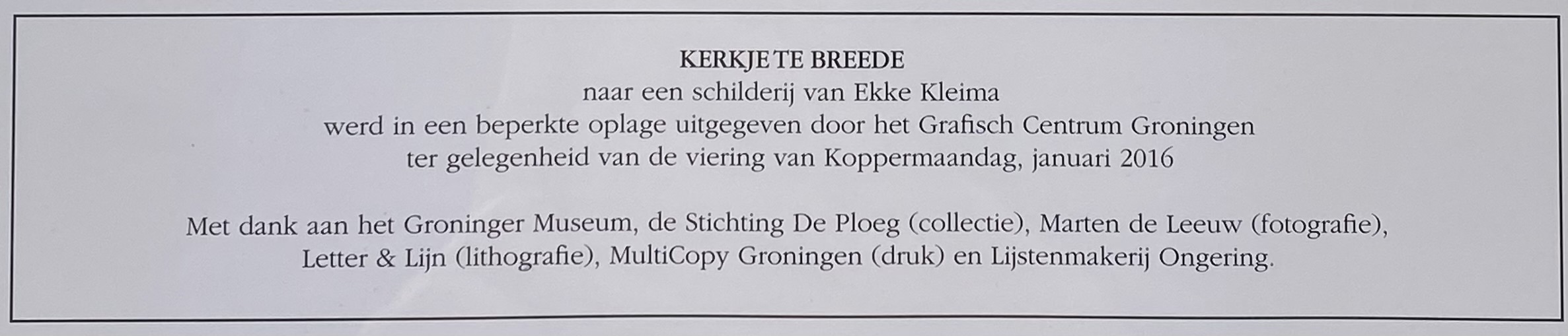 Litho, Ekke Kleima, "Kerkje te Breede", 2016, Koppermaandagprent