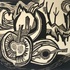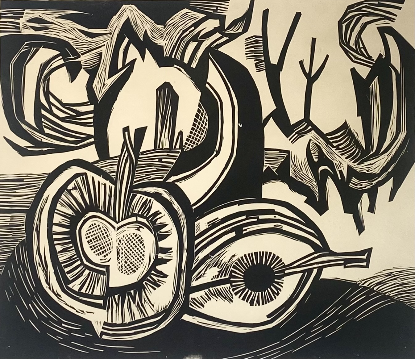 Houtsnede, Hubert Levigne – kubistisch stilleven, tweede helft 20e eeuw