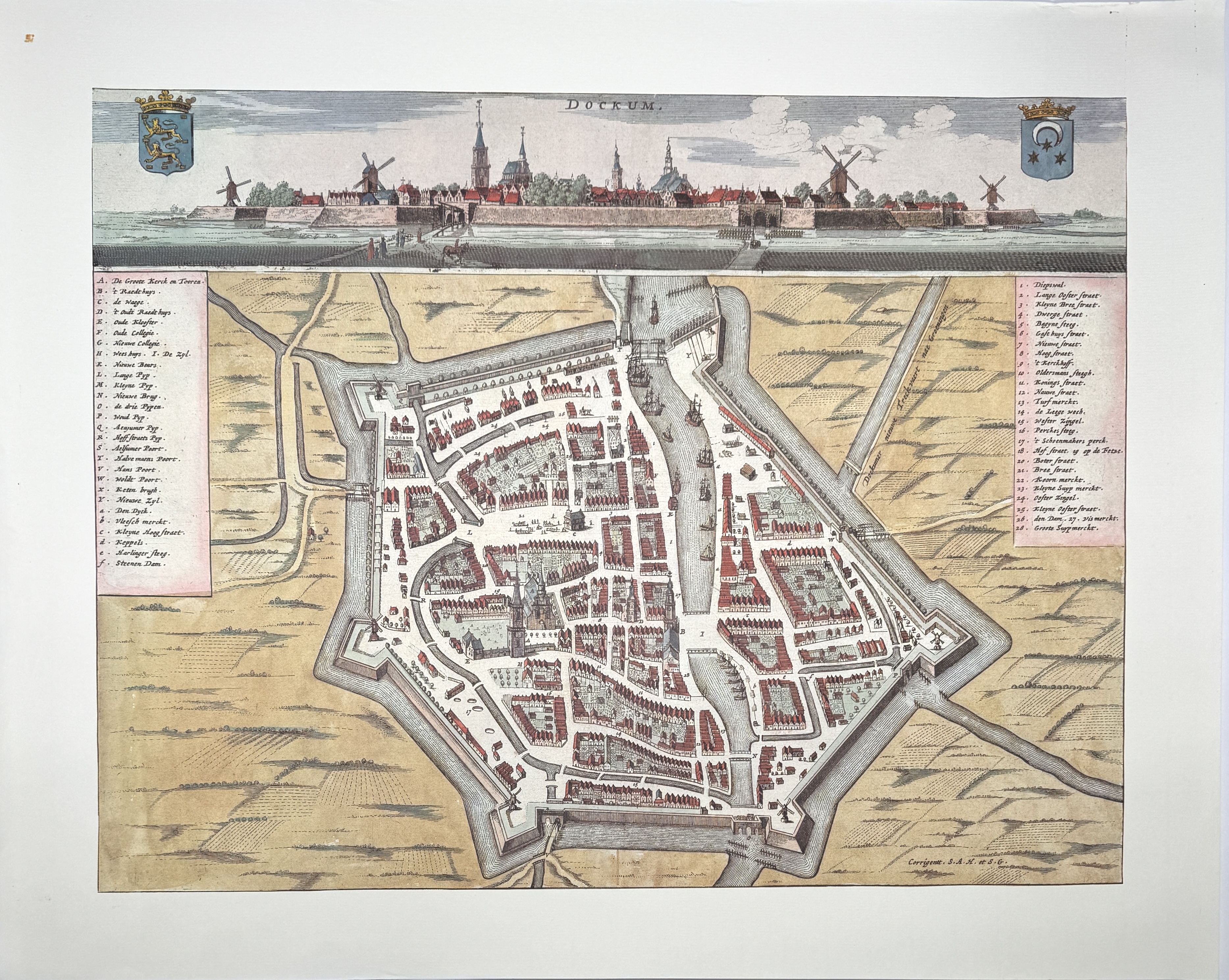 Prenten - historische cartografie Friesland en stadsplattegrond Dokkum, Nederland, tweede helft 20e eeuw
