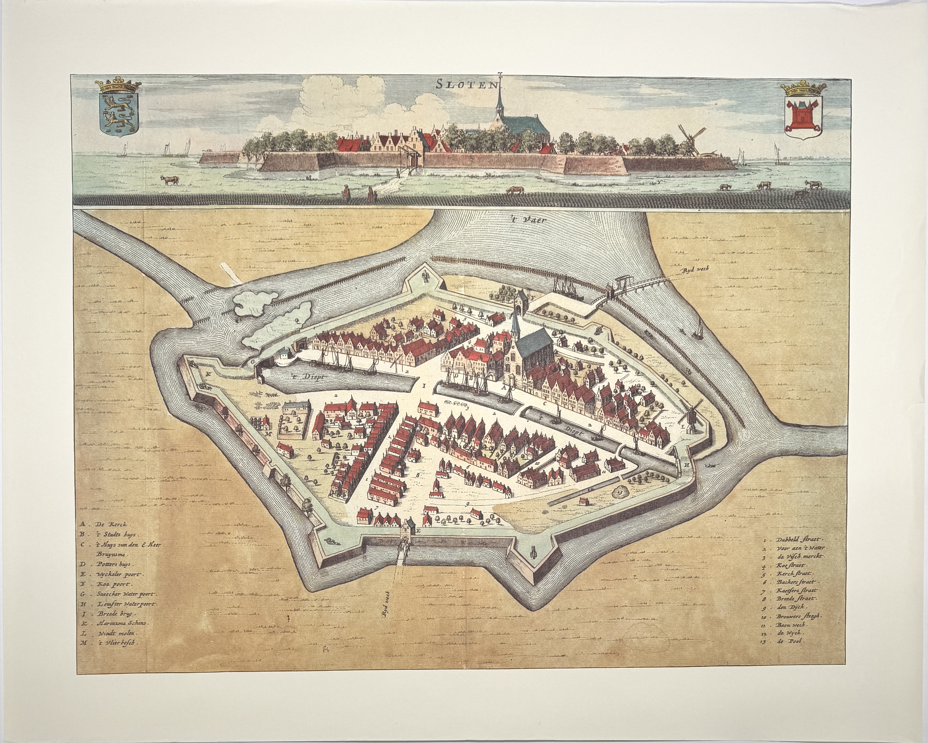 Reproducties en prenten op papier, vervaardigd middels offsetdruk/lithografie, daterend uit de periode circa 1960–1985. Het lot bevat historische cartografie van Friesland (naar Petrus Schenk) en een stadsplattegrond van Dokkum in barokstijl. Een deel is uitgegeven als relatiegeschenk door de Friesland Bank.. Hierbij een Leo Belgicus prent en een moderne aquarel. Wil je direct deelnemen? Plaats vanaf 21 november alvast een schriftelijk bod via onze website! |
