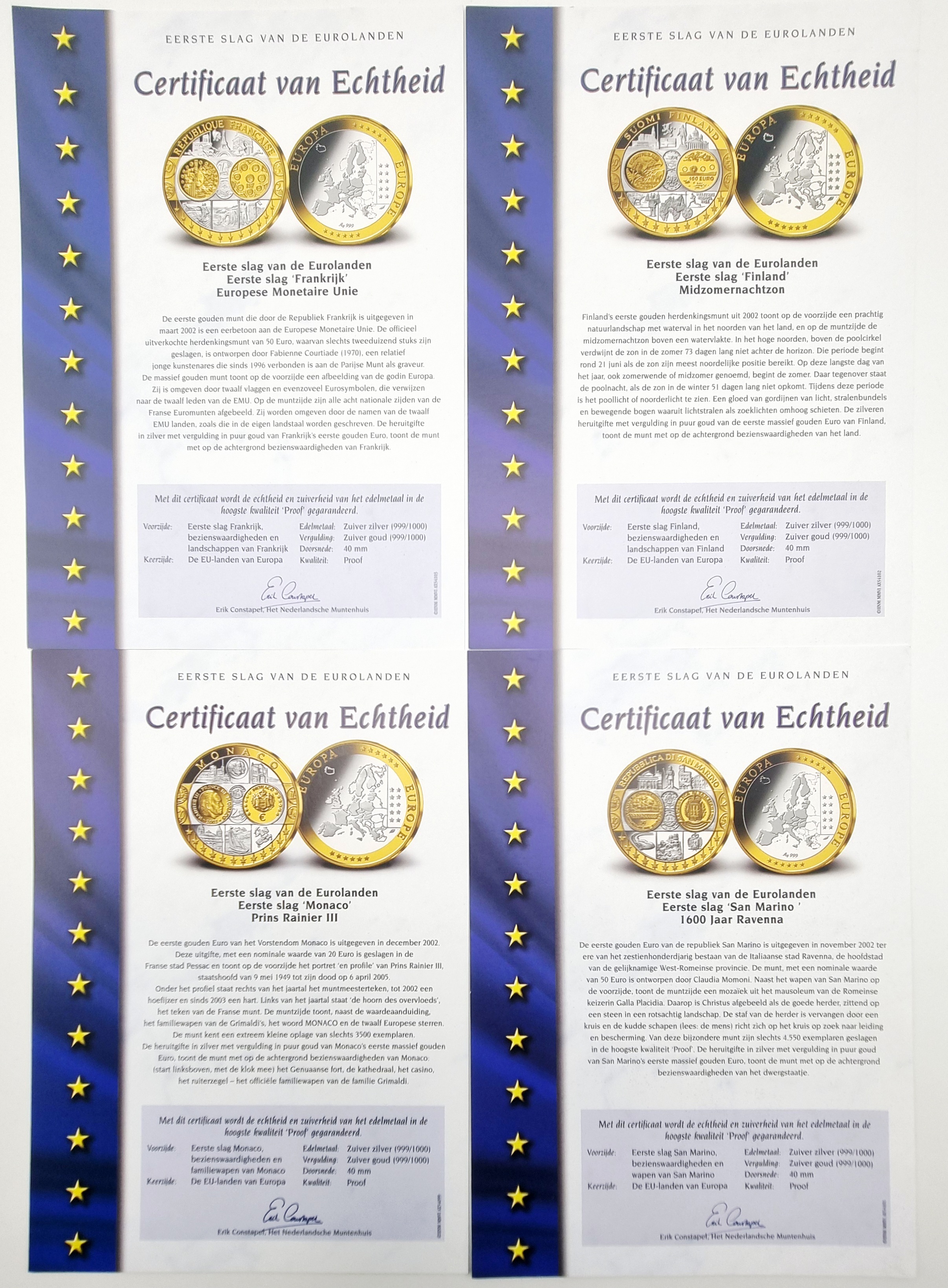 Zilveren munten, verguld, onedel, 1999-2003