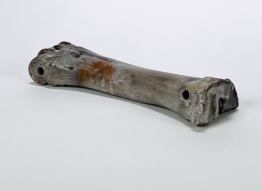 Oud schaats vervaardigd uit een bewerkt runder-middenvoetsbeen, daterend uit de circa 1400–1750, Noordwest-Europa. De schaats heeft twee geboorde gaten aan de uiteinden voor de bevestigingsriemen en diende als glij-instrument over ijs. Geïnteresseerd? Bezoek onze kijkdagen op 28, 29 of 30 november van 11:00 tot 17:00 uur! |