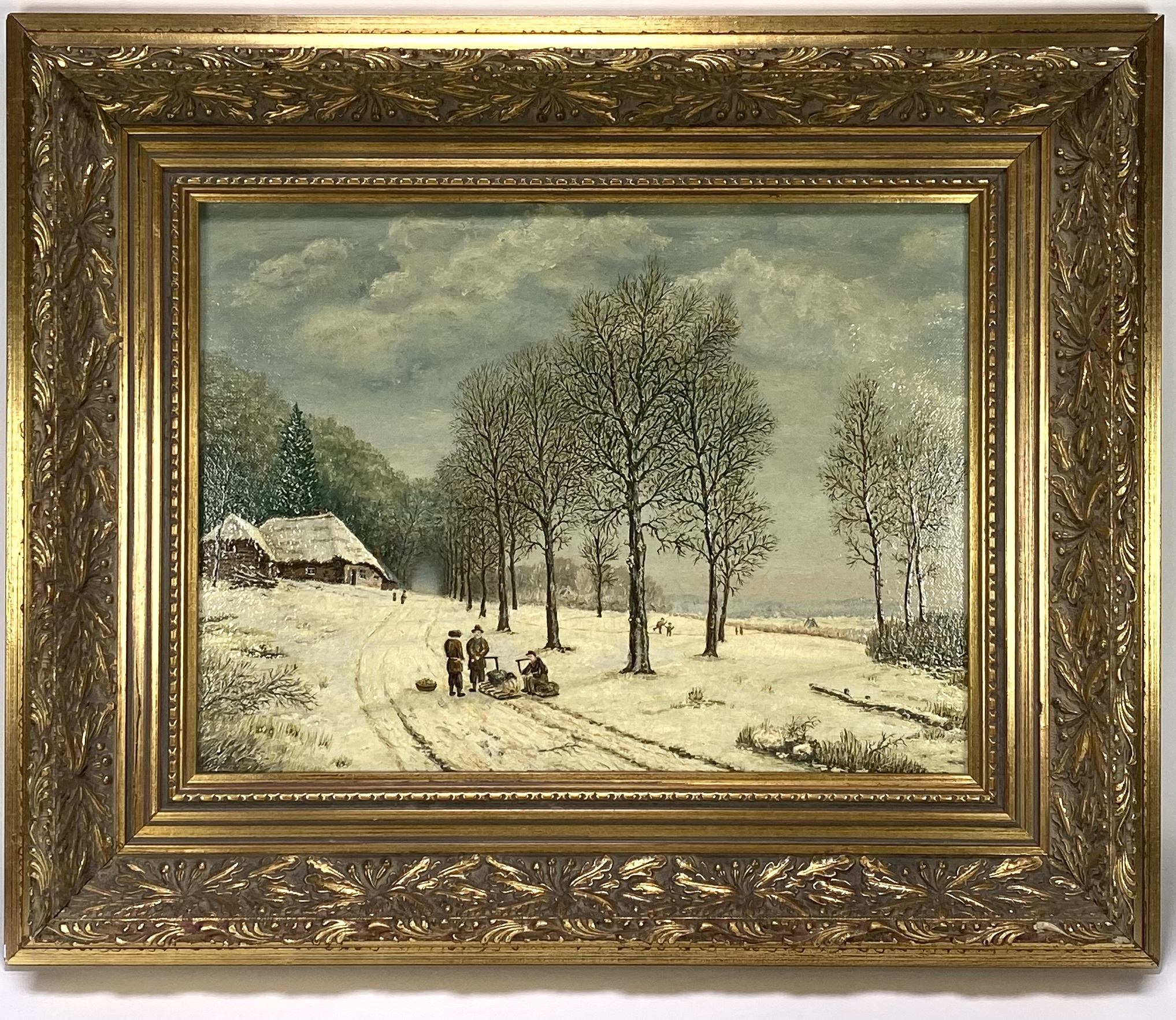 Olieverfschilderij, P.A. van Dam - Winterlandschap, Nederland, ca. 1900