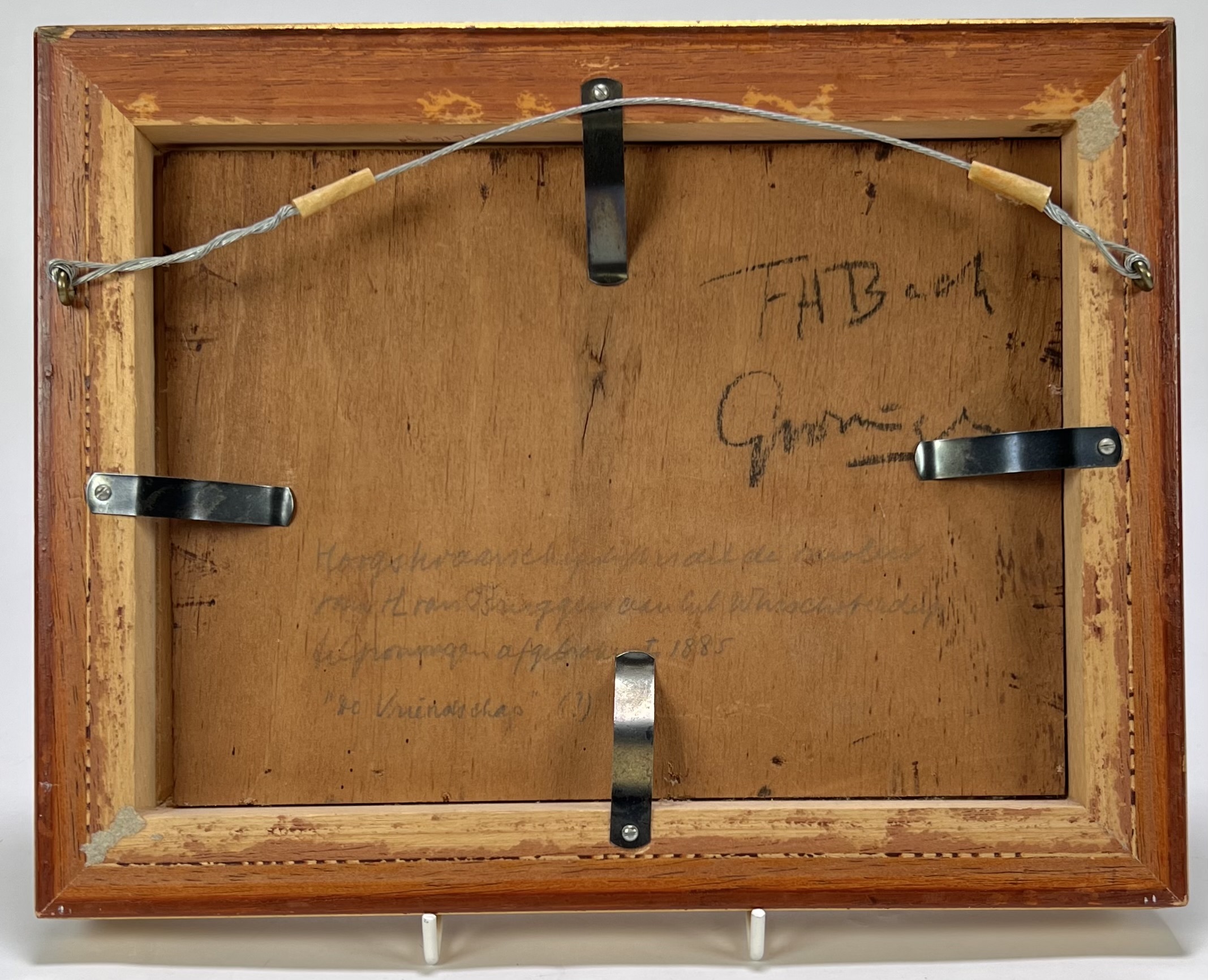 Franciscus Hermanus Bach (1865–1956) schilderde dit olieverf op paneel in de periode 1890–1910, Haagse School. Bach was een Groningse schilder die het landschap rond de eeuwwisseling vastlegde. Het werk toont een Nederlands molenlandschap met een rokende industriële schoorsteen onder een zware en atmosferische wolkenlucht, de compositie is kenmerkend voor zijn oeuvre. Het paneel bevat de initialen F.H. Bach op de achterzijde. Ontdek dit schilderij en voeg het toe aan jouw collectie! Registreer nu voor de veiling. |