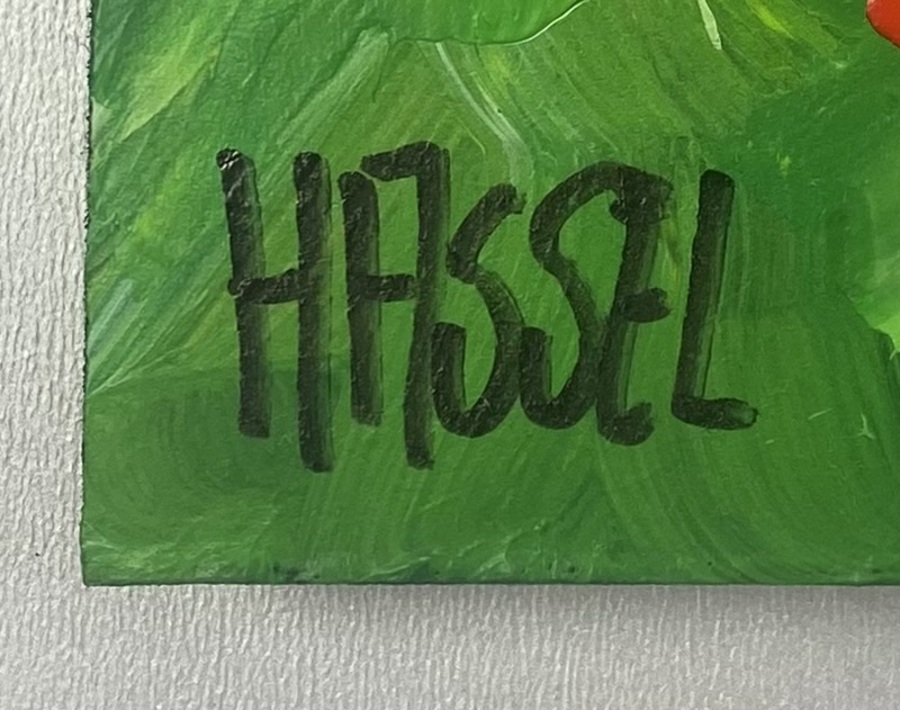 Acrylverfschilderij door Ad van Hassel (1953) op board, circa 2000–2020, in een expressieve en popart stijl. Het schilderij toont een gestileerd stilleven van vier grote, helderrode tulpen tegen een levendige, blauw-groene achtergrond. De verf is dik aangebracht met een grove penseelstreek, typerend voor zijn tulpenserie. Het werk is gesigneerd "HASSEL" linksonder en van Nederlandse herkomst. Je bent welkom op onze kijkdagen op 28, 29 en 30 november! |