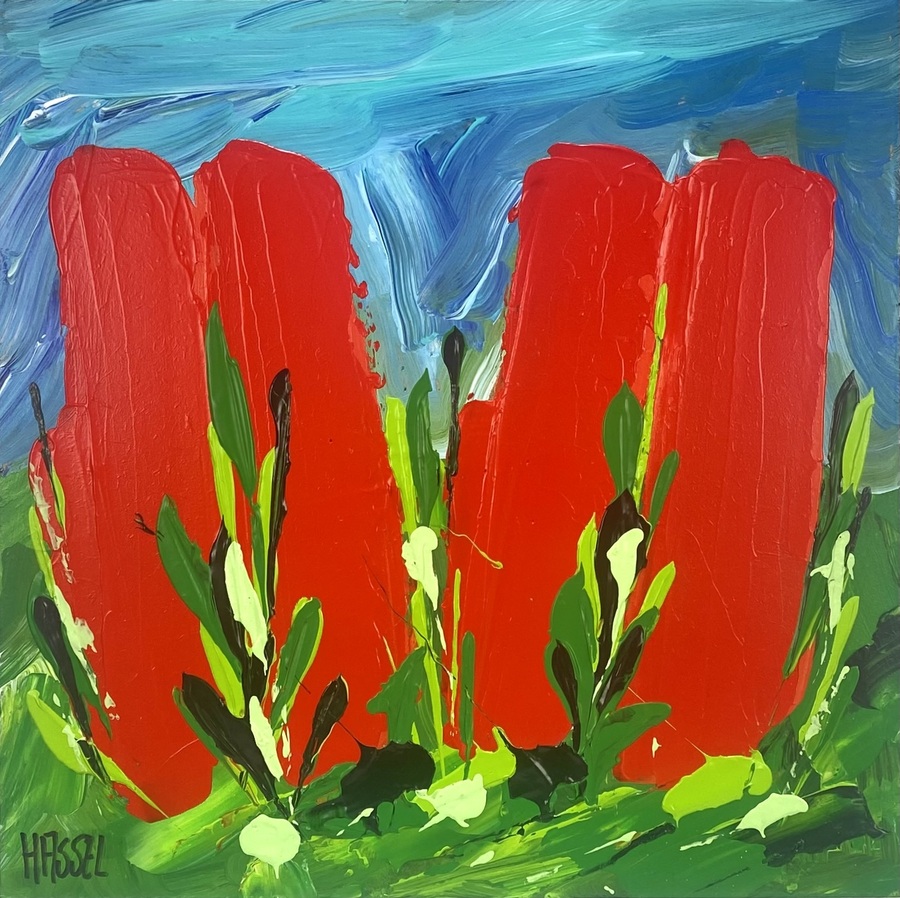 Acrylverfschilderij, Ad van Hassel – rode tulpen, 21e eeuw