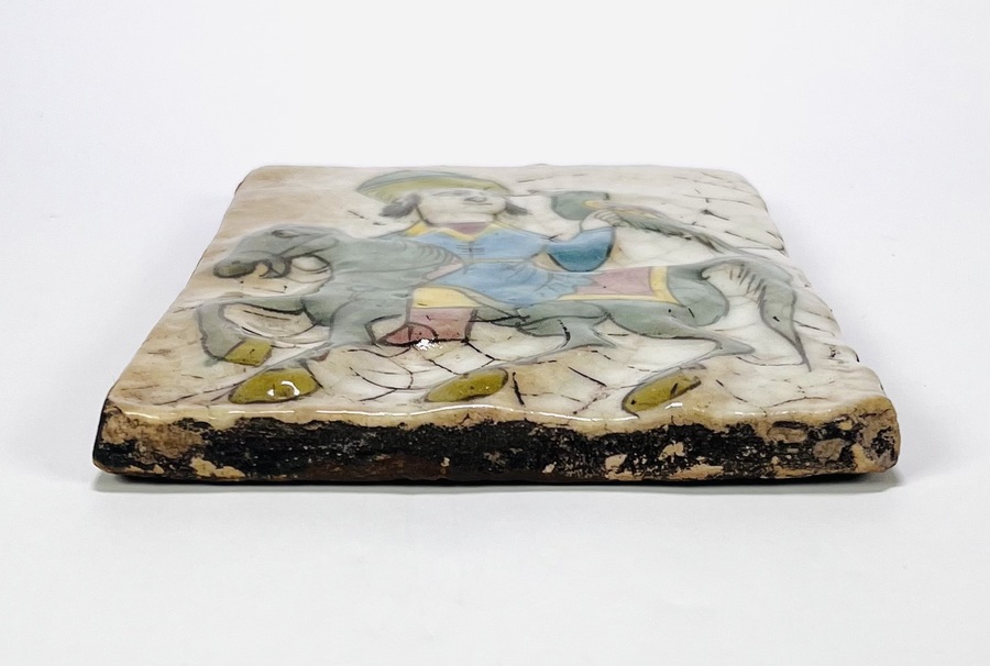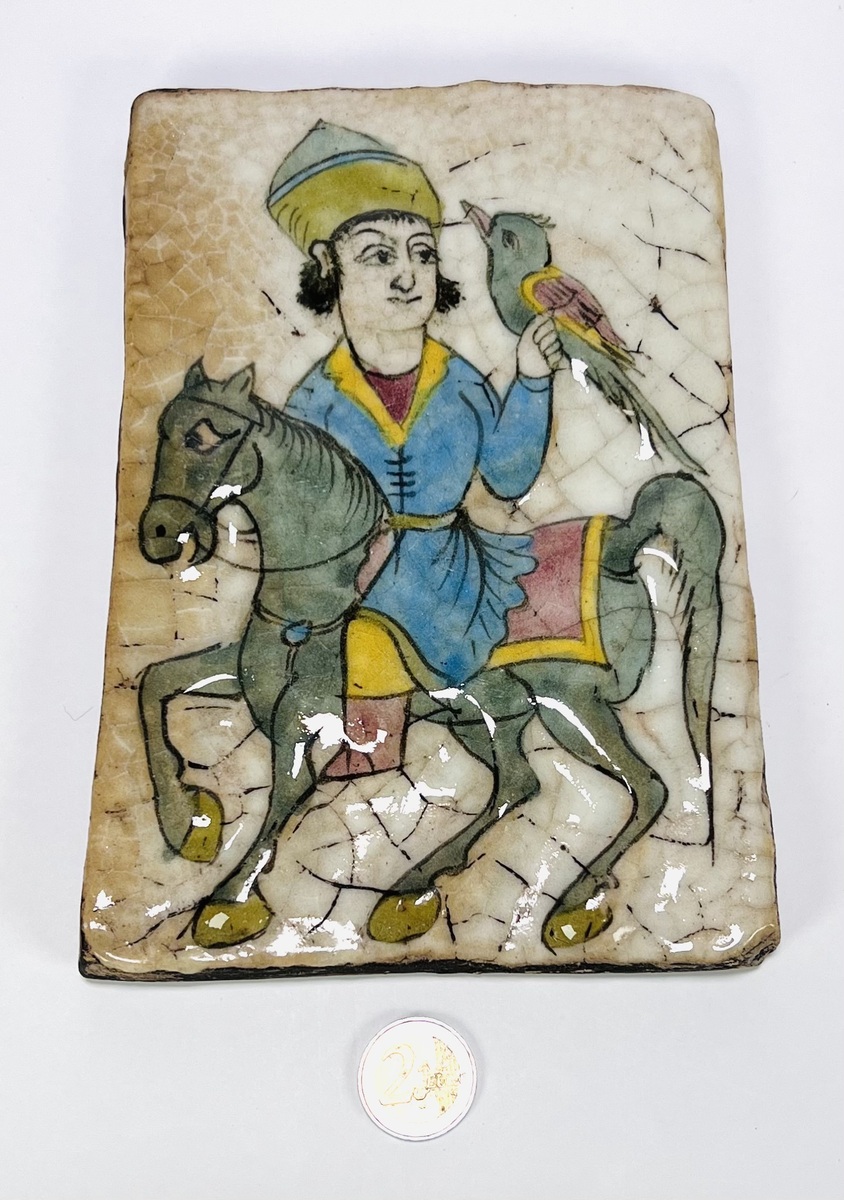 Tegel - ruiter met vogel, Perzië, ca. 1900