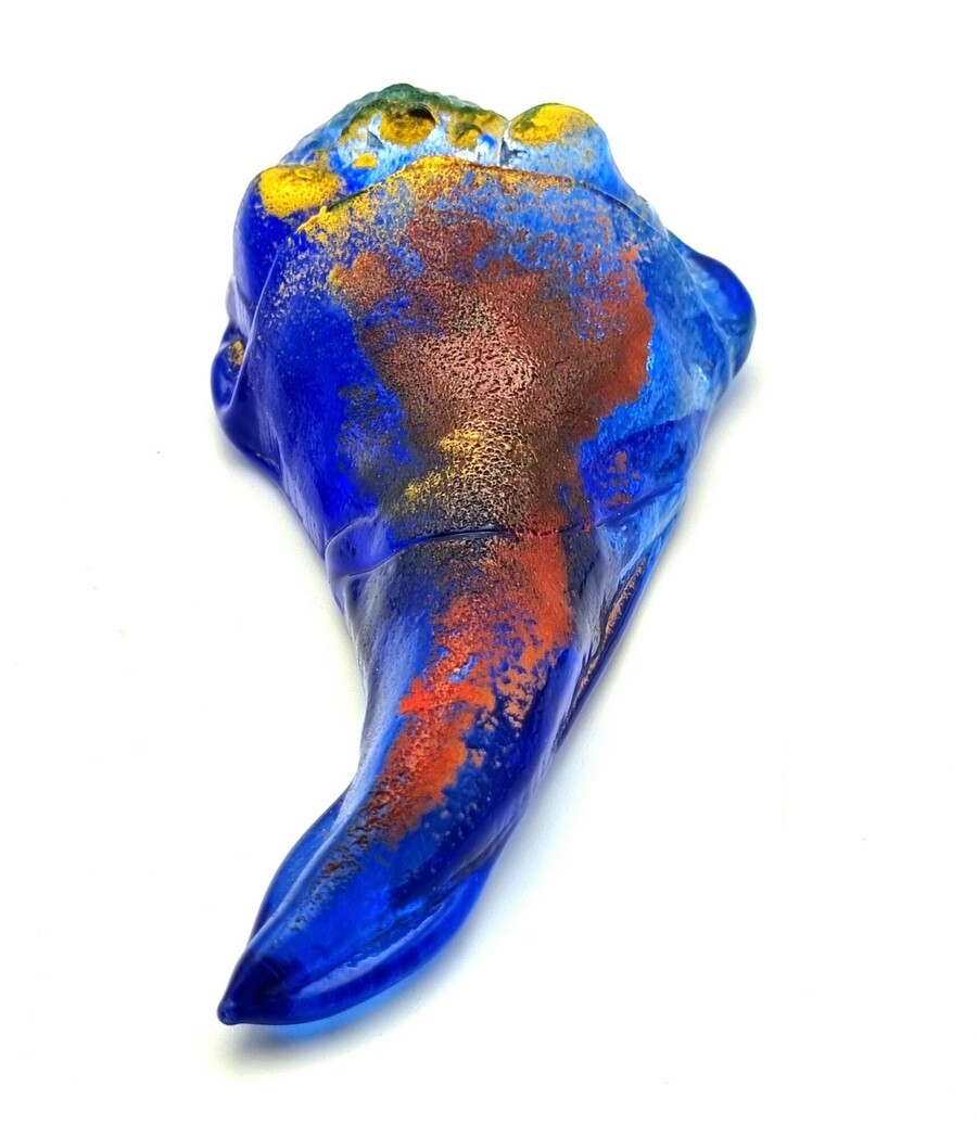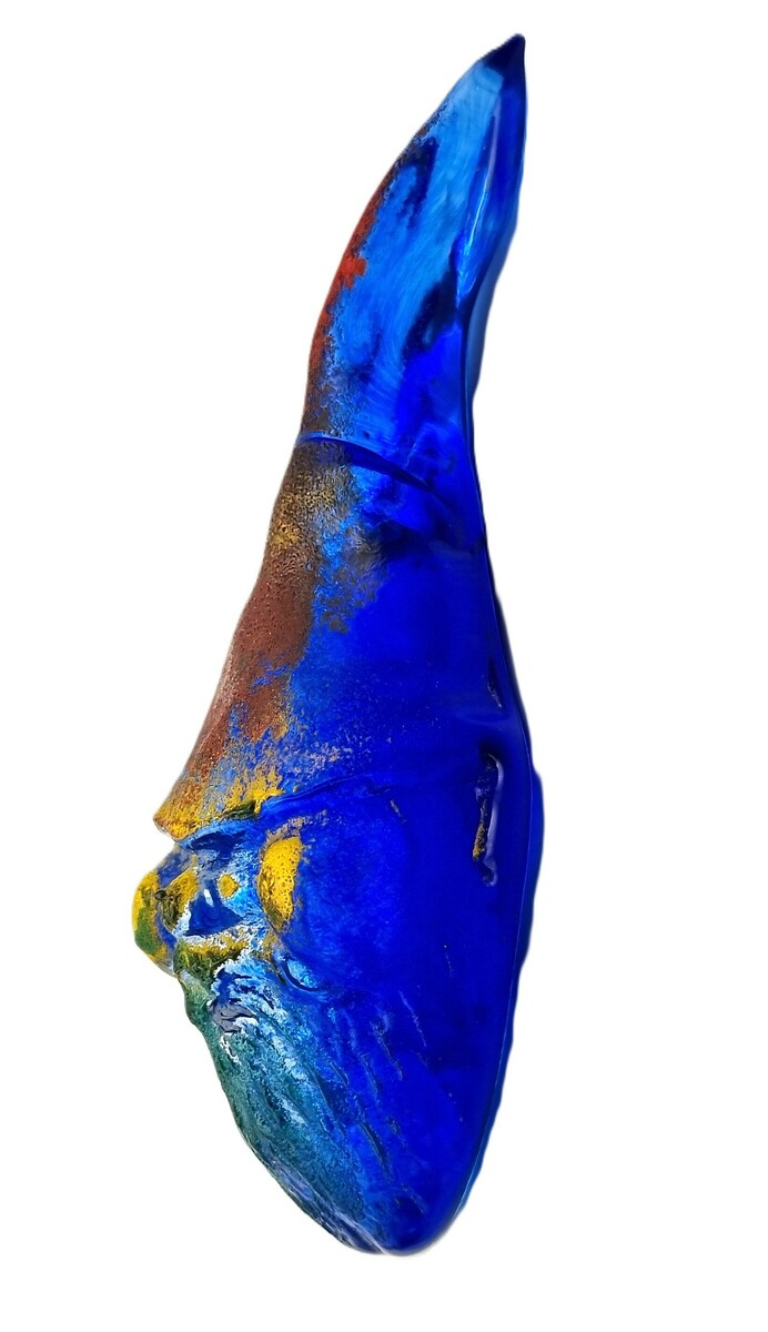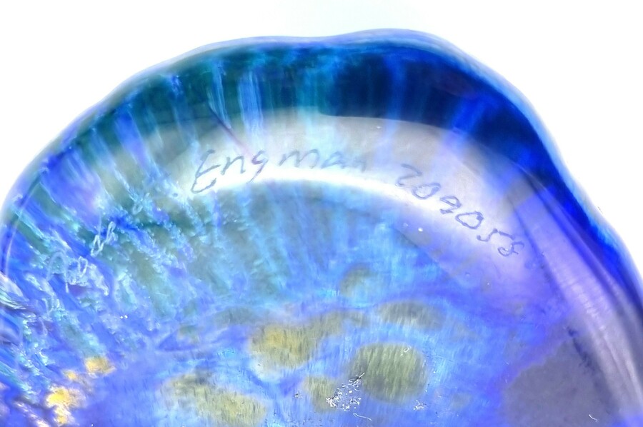 Glazen wandornament "Sleepy" uit de Christmas Portraits serie, ontworpen door Kjell Engman (1946) voor Kosta Boda in 2005. Het object is gemaakt van massief blauw glas met poederfusies in oranje en gele kleur. De figuratieve voorstelling van een kerstmanhoofd in expressieve stijl is gesigneerd met "Engman" en het modelnummer 7090586. Vervaardigd in Zweden. Wil je direct deelnemen? Plaats vanaf 21 november alvast een schriftelijk bod via onze website! |