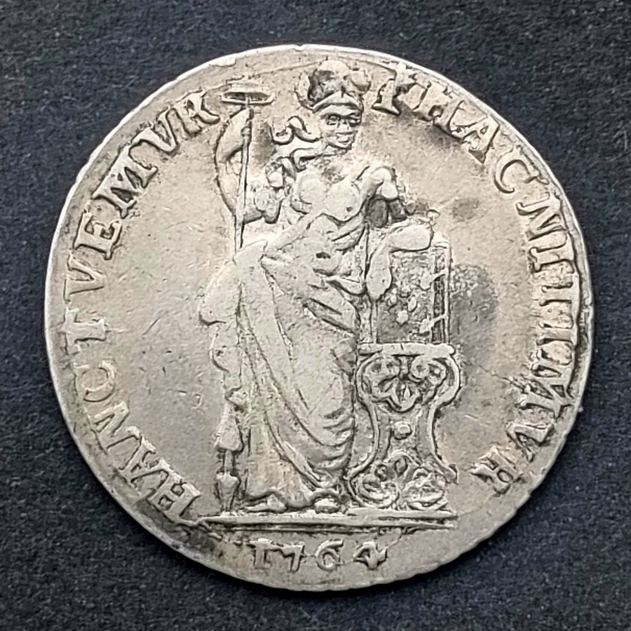 De zilveren gulden is een provinciale circulatiemunt van de Republiek der Zeven Verenigde Nederlanden, geslagen in 1764 in het munthuis van Gelderland (Harderwijk). De munt toont de gekroonde generaliteitsleeuw en de staande Hollandse maagd met vrijheidslans. Het is een bodemvondst met duidelijke corrosie en slijtage. Geïnteresseerd? Bezoek onze kijkdagen op 28, 29 of 30 november van 11:00 tot 17:00 uur! |