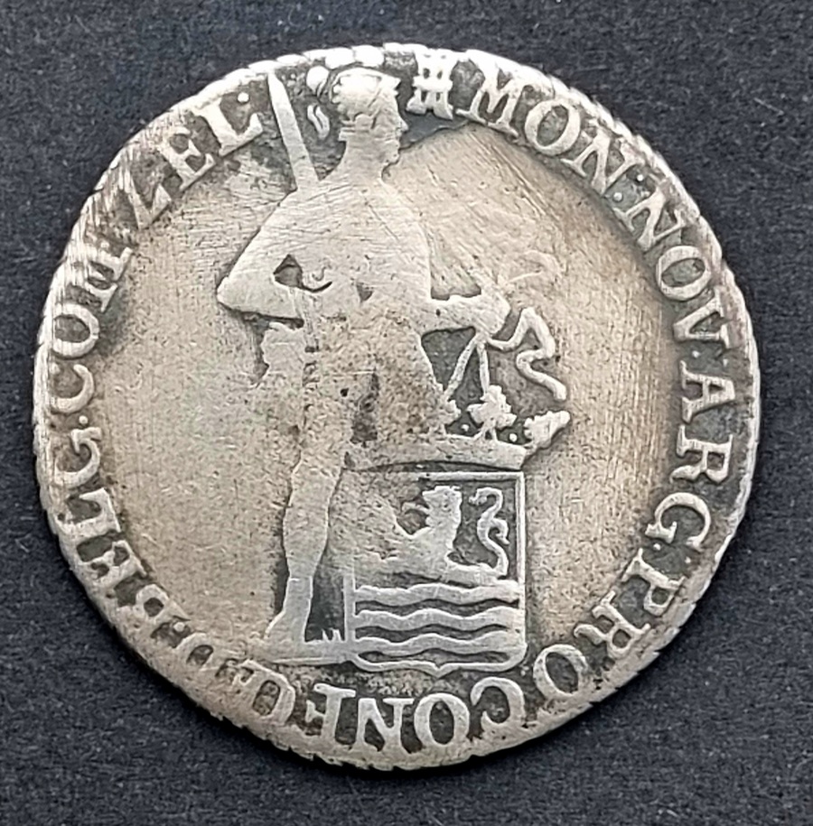 Een zilveren dukaat, een provinciale circulatiemunt van de Republiek der Zeven Verenigde Nederlanden, geslagen in 1793 door muntmeester Paulus Loots in West-Friesland (Enkhuizen). De munt toont het gekroonde generaliteitswapen en de staande Hollandse maagd. Het is een bodemvondst met aanzienlijke slijtage en corrosie. Klaar om te bieden? Registreer je nu en doe mee aan de veiling! |