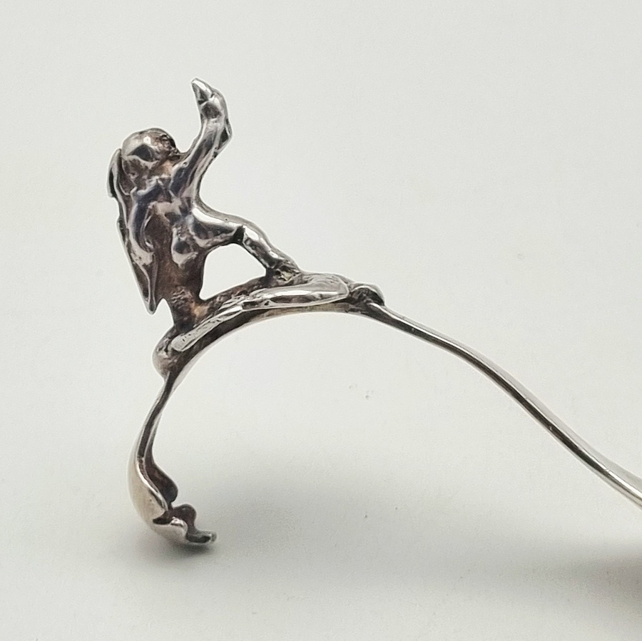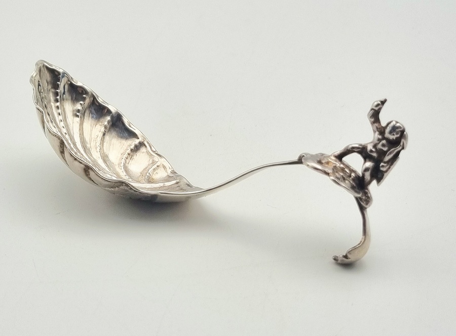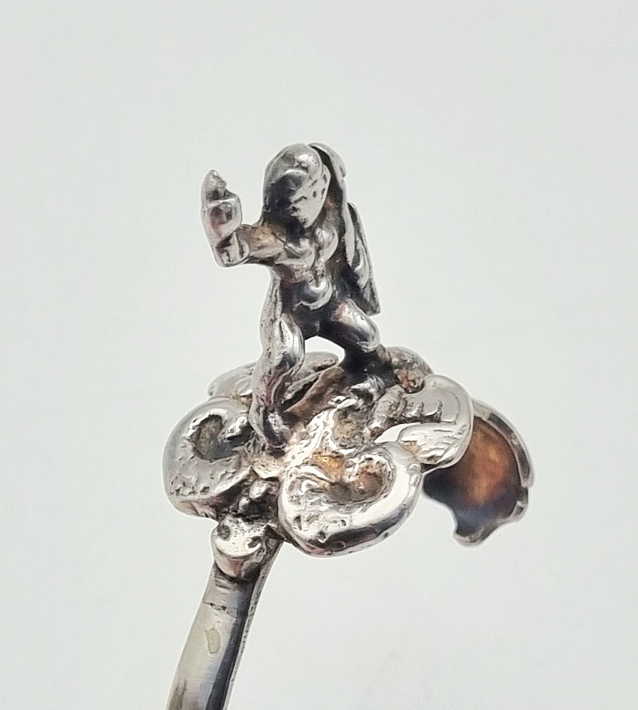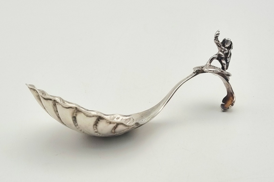 Een zilveren roomlepel in de late rococo stijl, gedateerd in het midden van de 18e eeuw, Nederland. De roomlepel is vervaardigd door gieten en ciseleren met een dynamische figuratie van een mythologische figuur op het uiteinde van de steel. De lepelbak vertoont een asymmetrisch schelpvormig ornament, kenmerkend voor de rococo esthetiek. Wil je de roomlepel in het echt bekijken? Kom naar de kijkdagen op 28, 29 en 30 november! |
