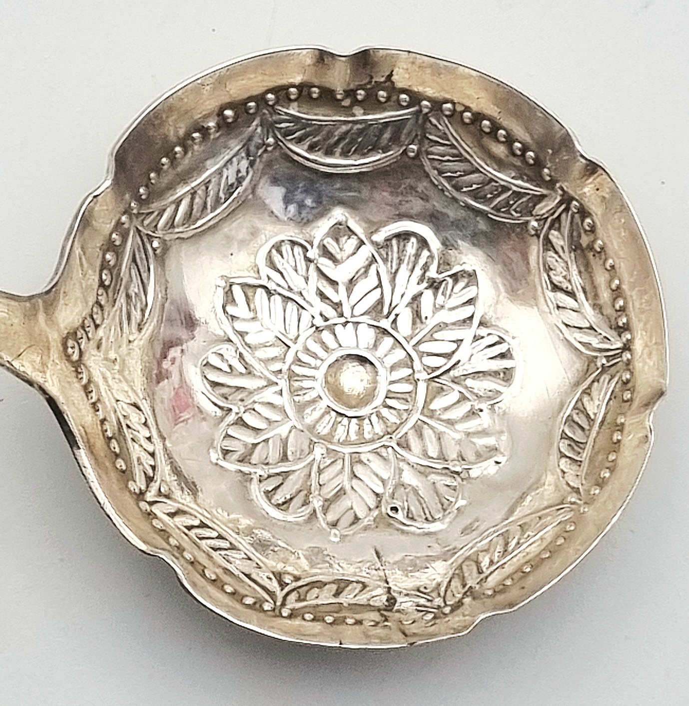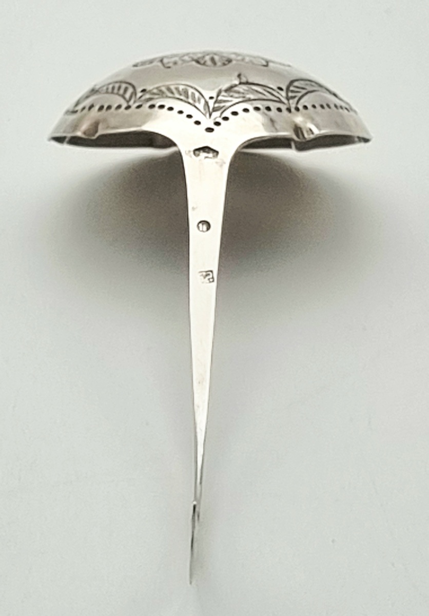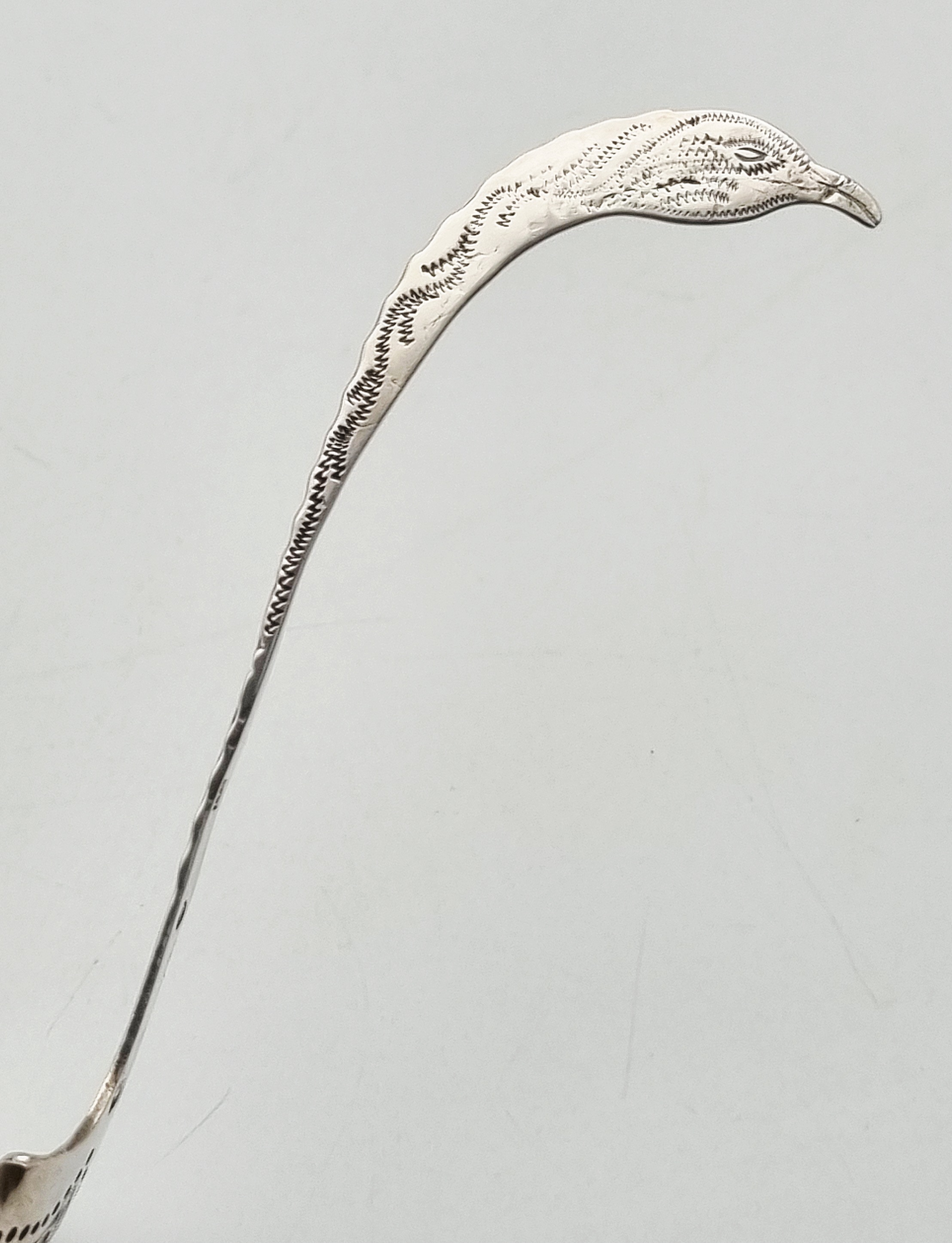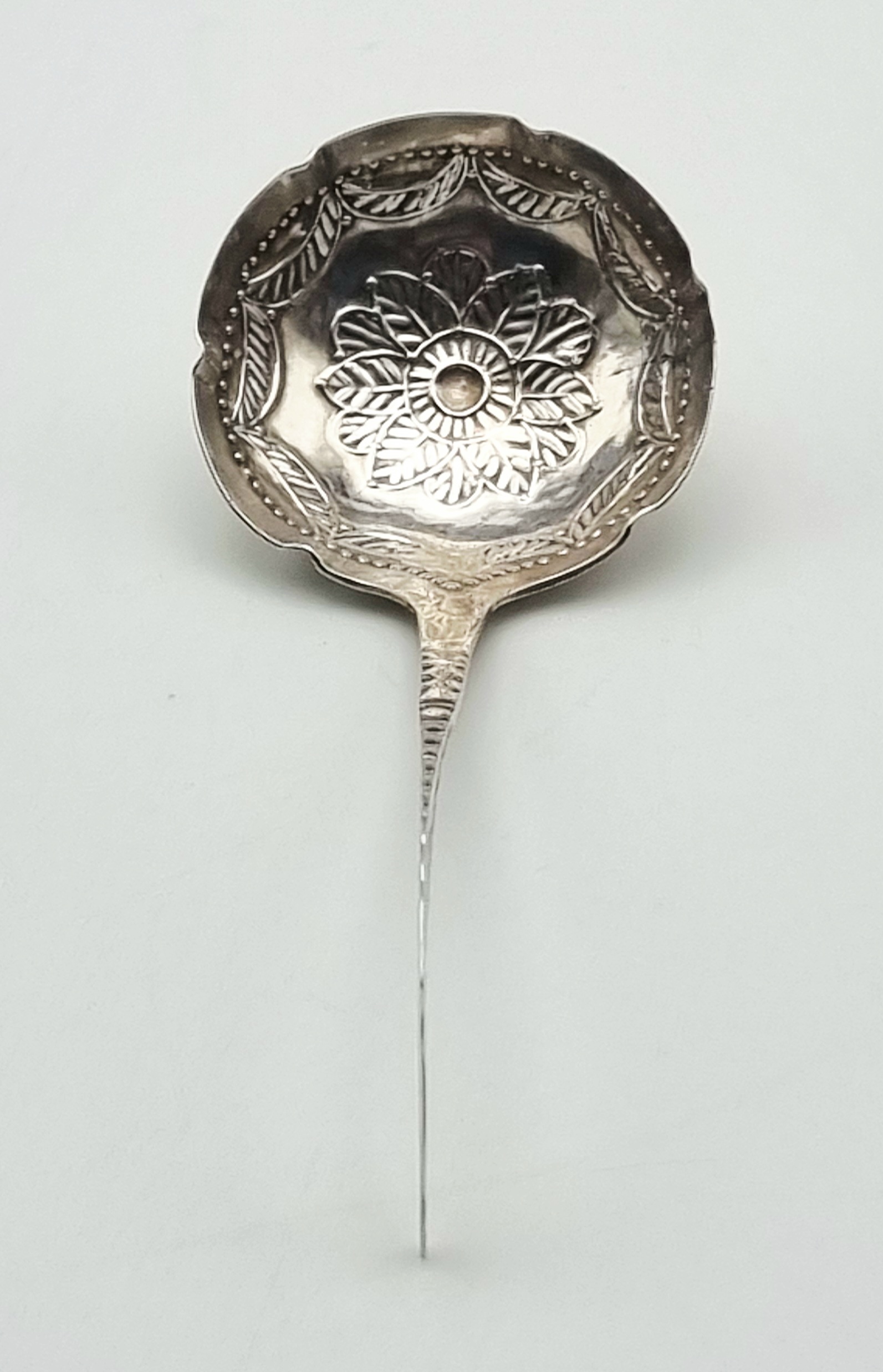 De Biedermeier zilveren roomlepel of zwanenhalslepel dateert uit 1836 (jaarletter B), vervaardigd door de zilversmid C. Kuitert, gemerkt meesterkeur CK, uit Groningen. De lepel is gedreven en gegraveerd met een gestileerd floraal motief en puntlijnen. De lange gebogen steel eindigt in een zwanenkop motief. Alsook gemerkt met keurmerken lopende leeuw 2 en minervakop. Kom langs tijdens de kijkdagen (28 t/m 30 november) en ontdek deze roomlepel zelf! |