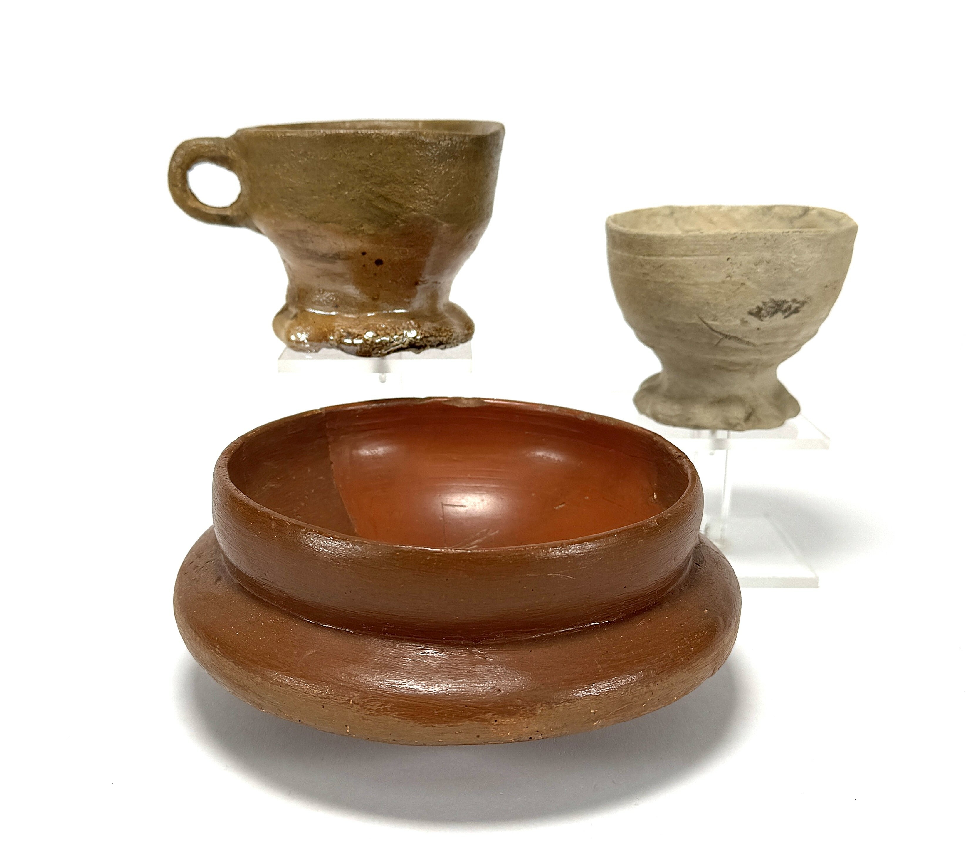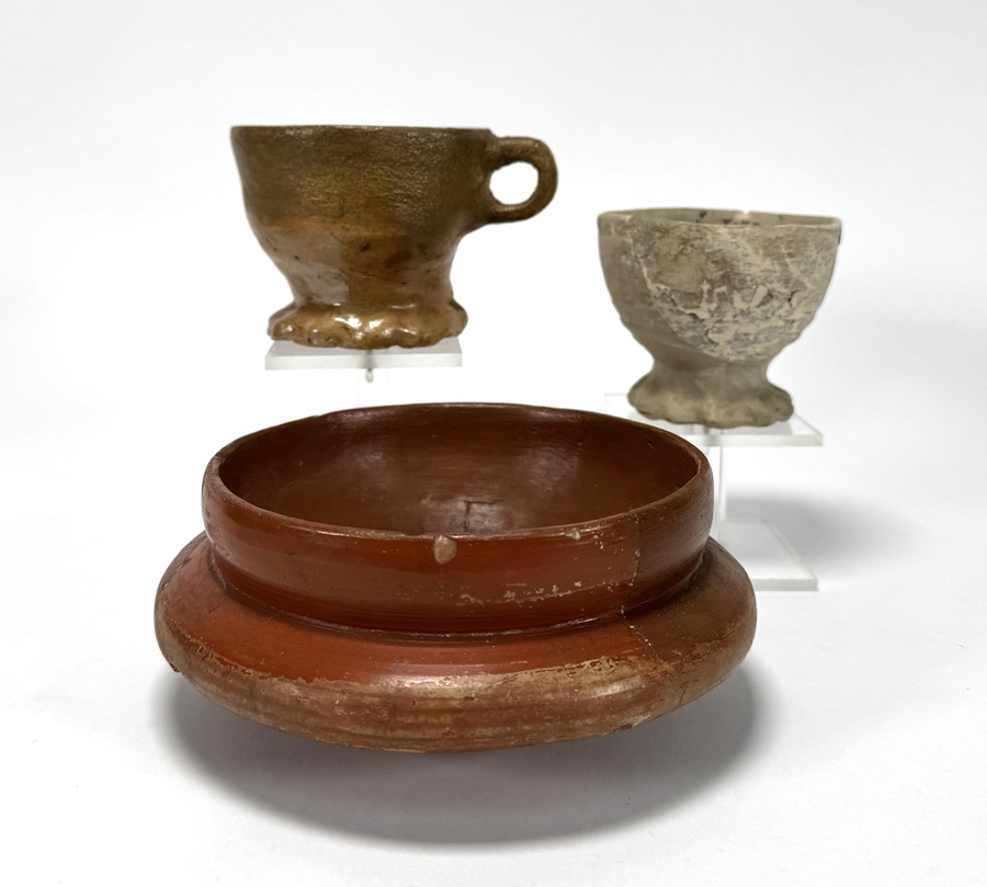 Aardewerk schaal en bekers, tweede helft 19e eeuw