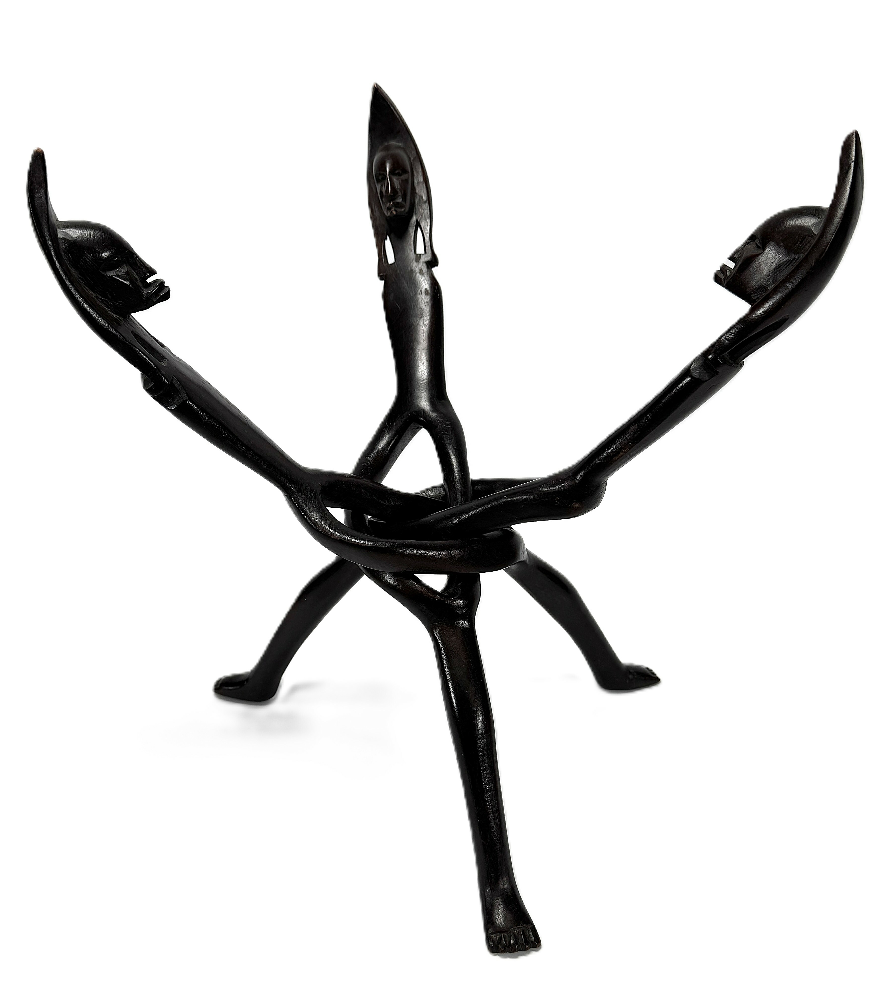 Houten standaard, Oost-Afrika – Drie in elkaar gevlochten figuren
