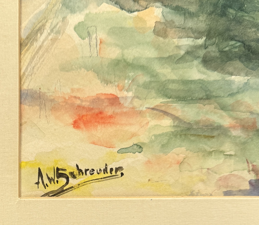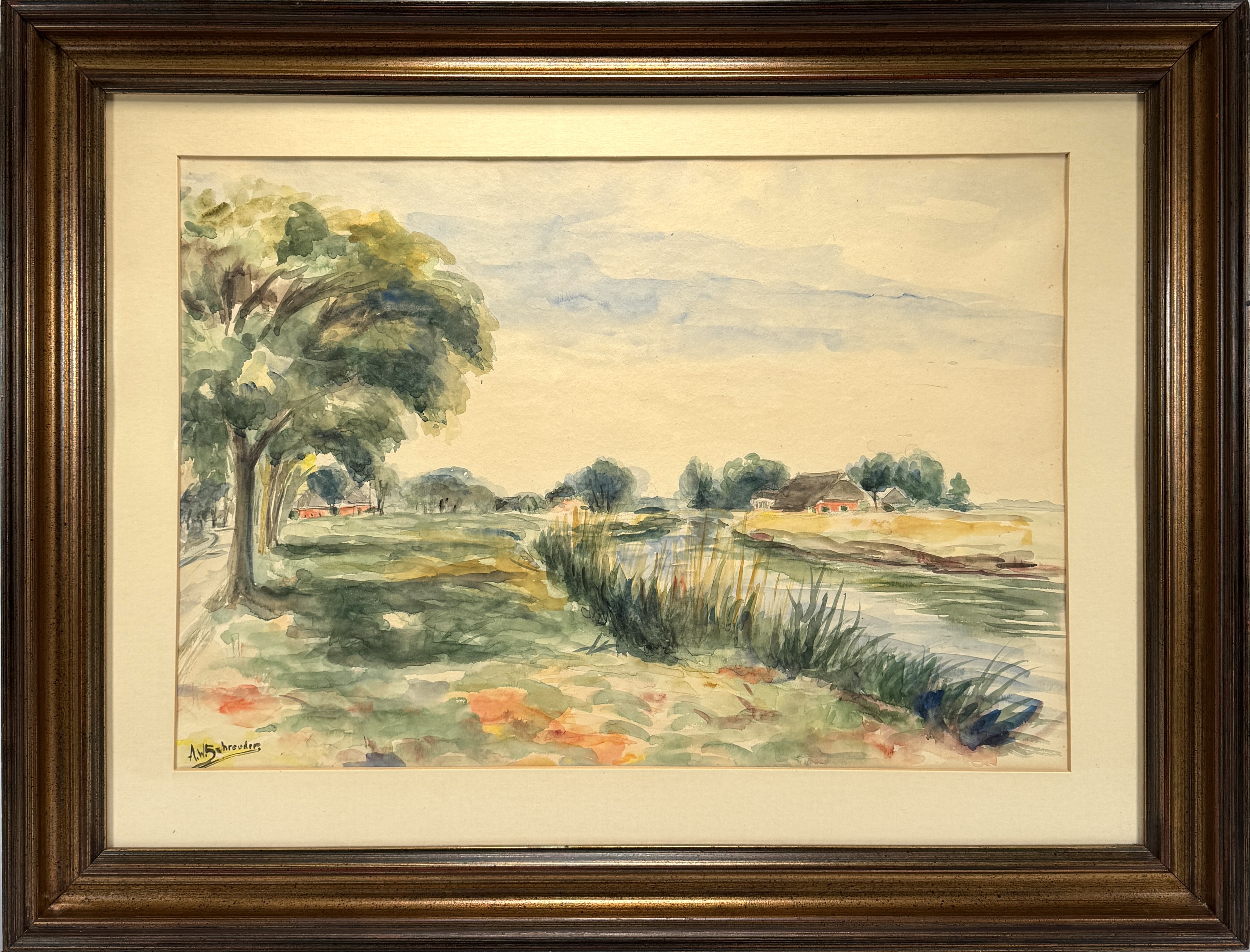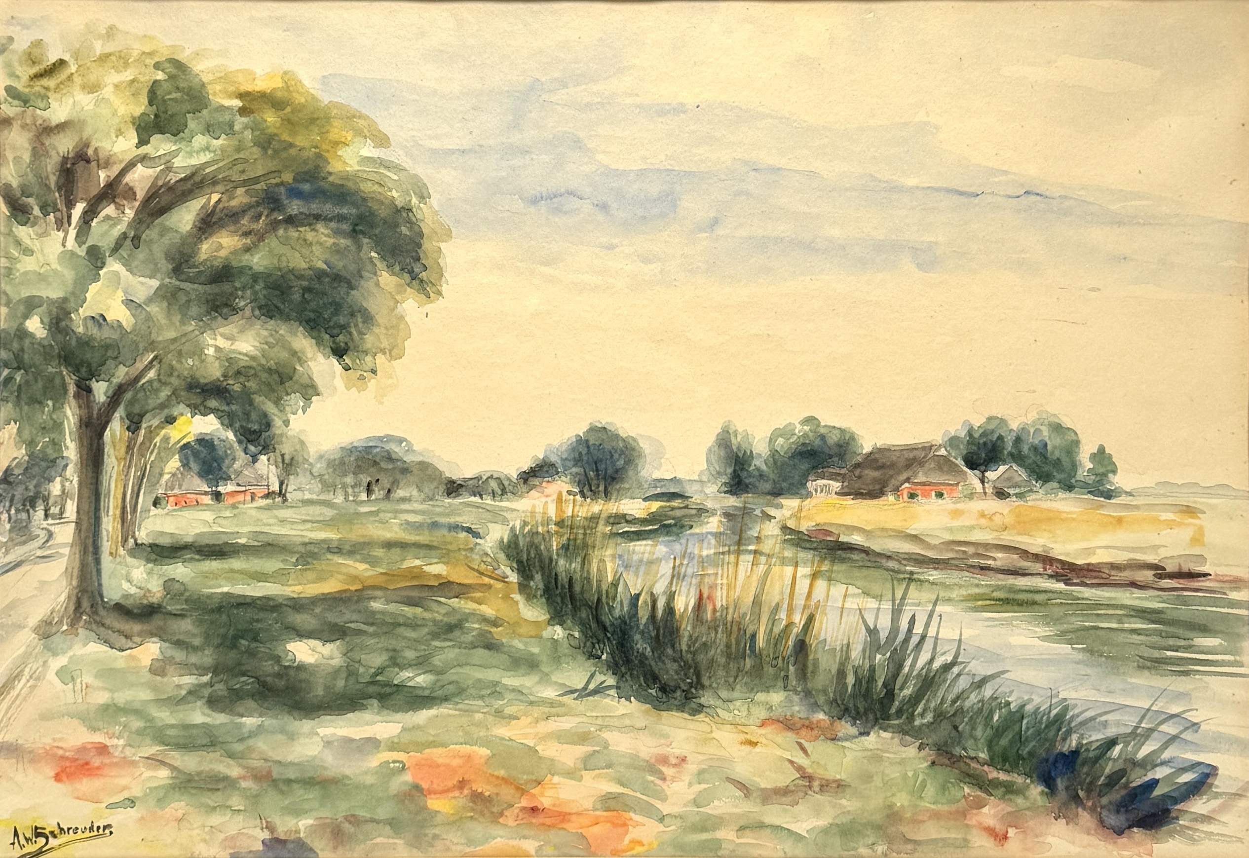 Aquarel, A.W. Schreuder – "Reitdiep bij Winsum”, ca. 1965, Nederland