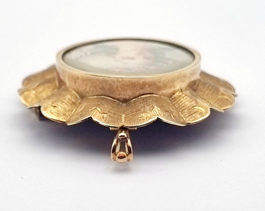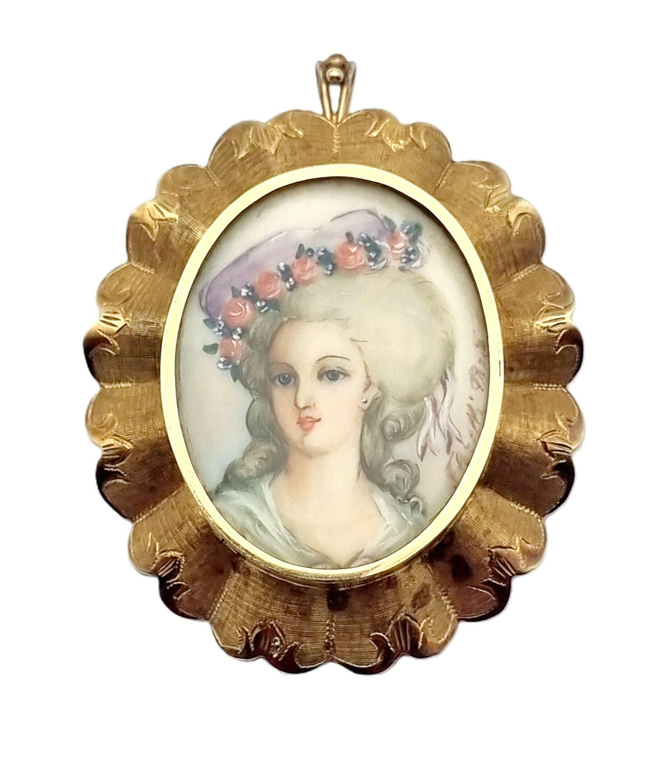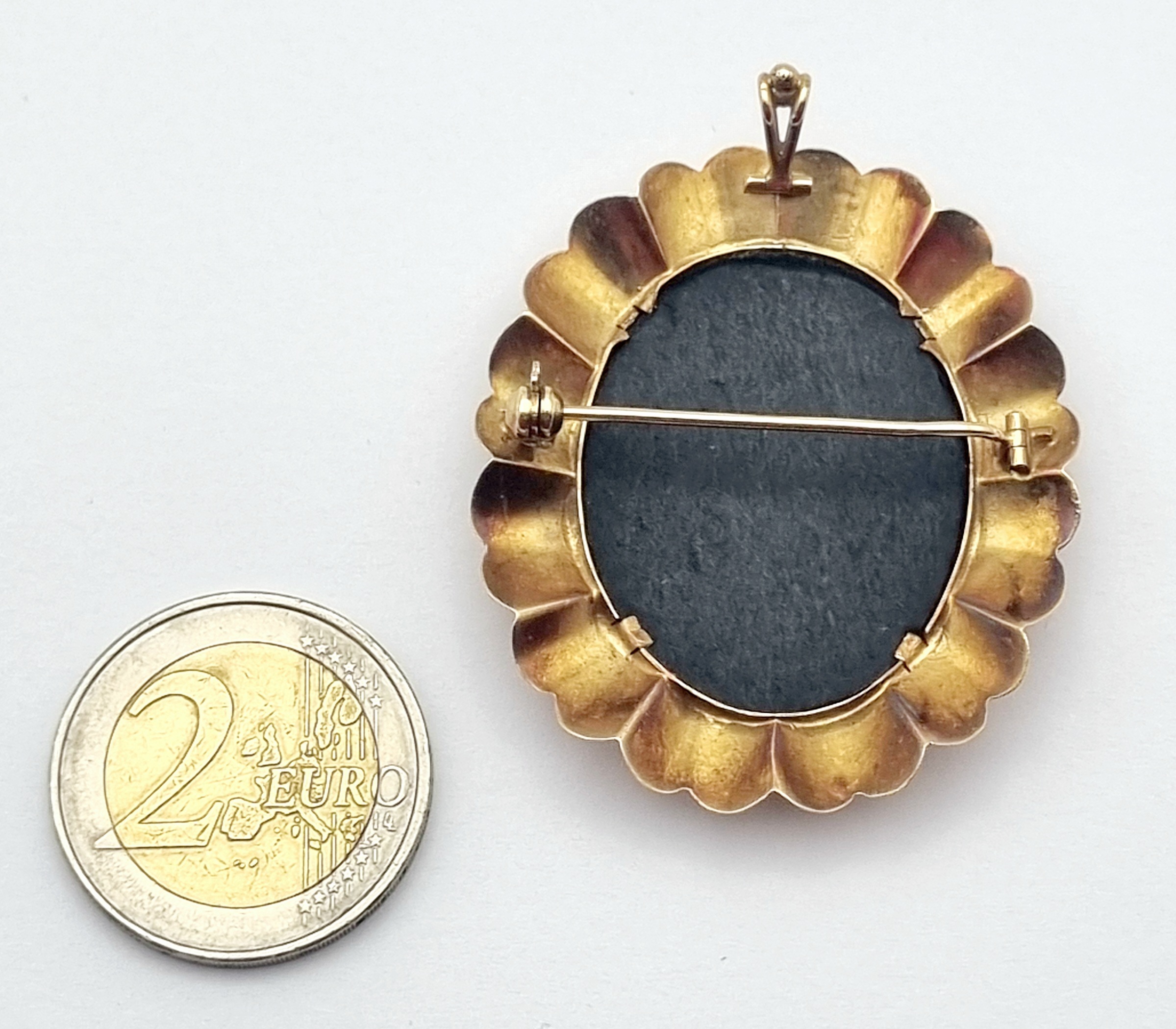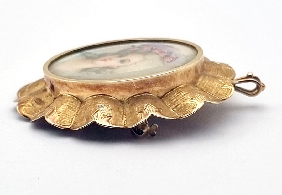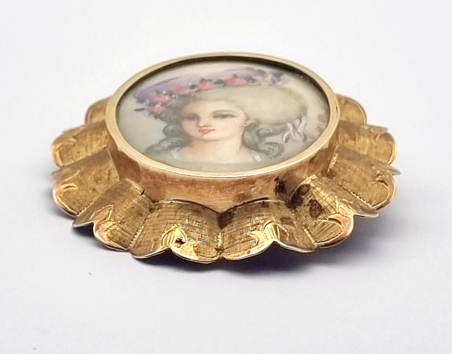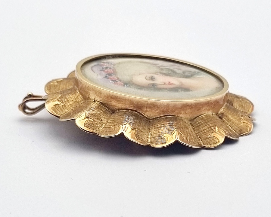 Gouden broche/hanger, miniatuurportret emaille, midden 20e eeuw