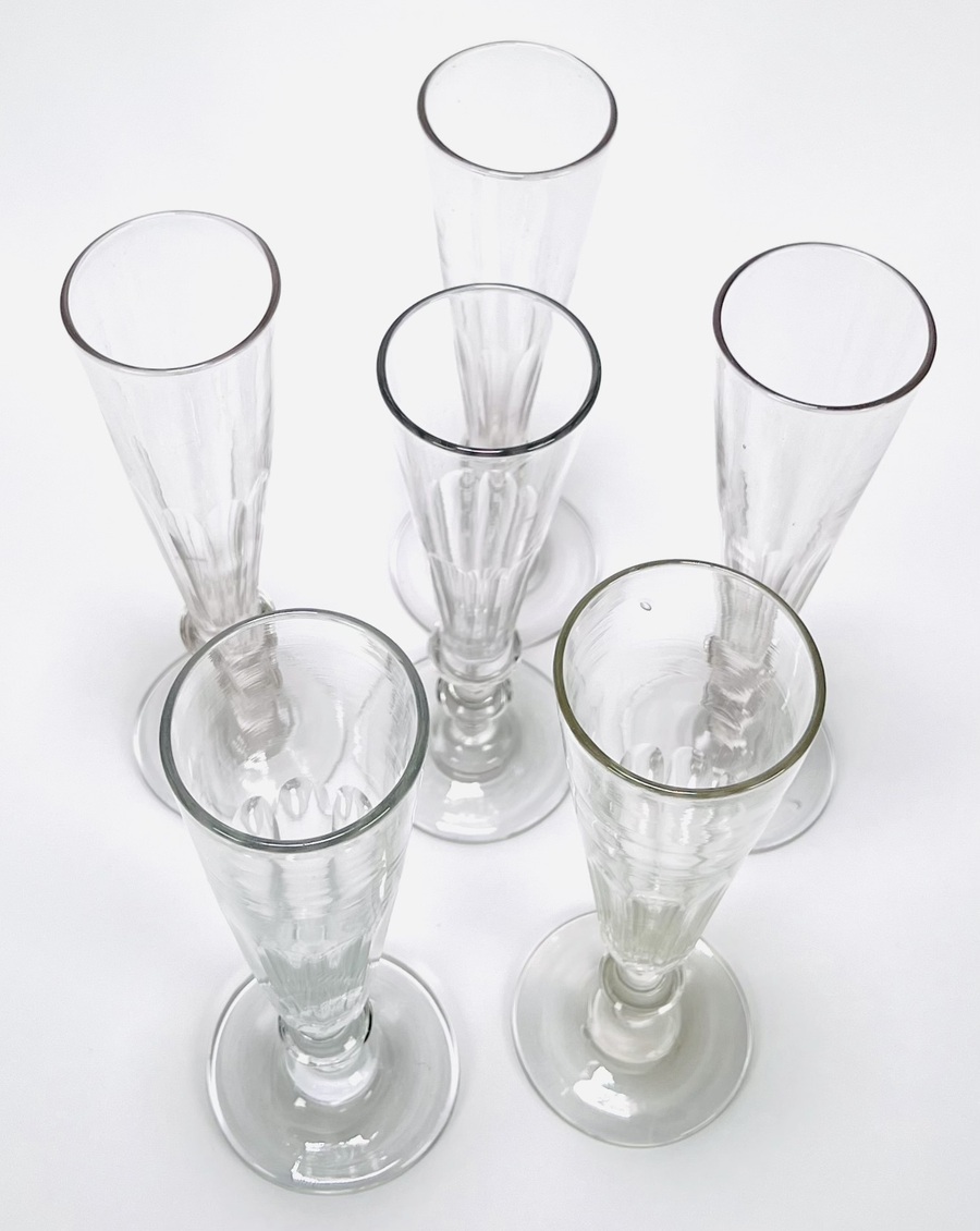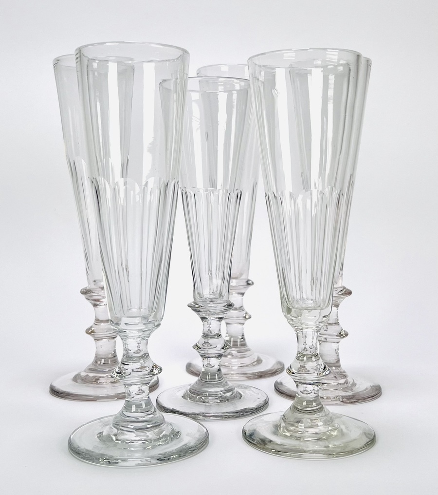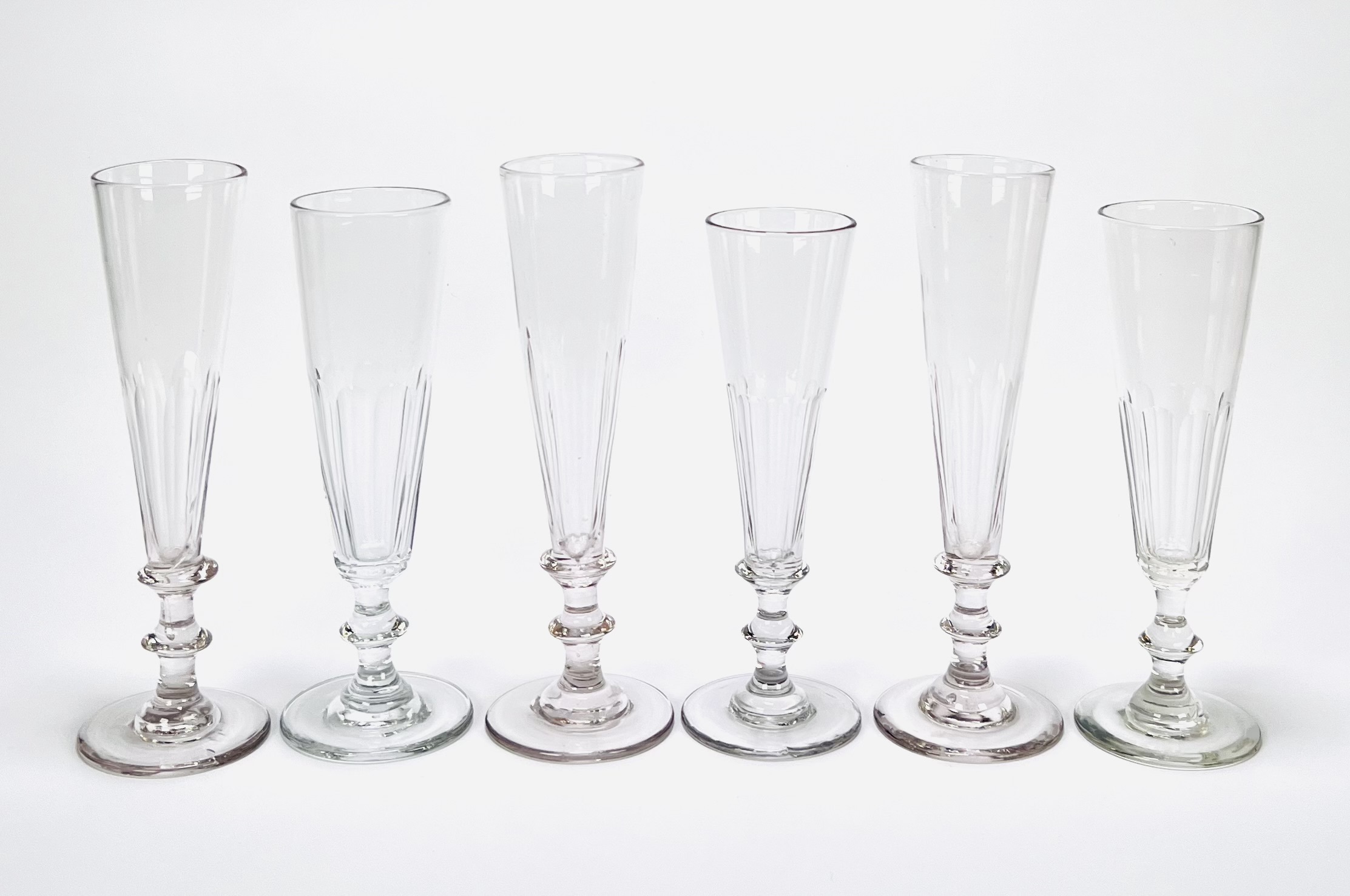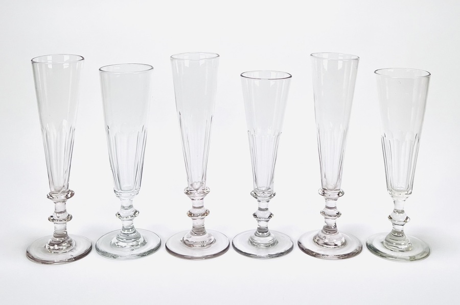 Kristalglas champagne flûtes, Biedemeier, midden 19e eeuw