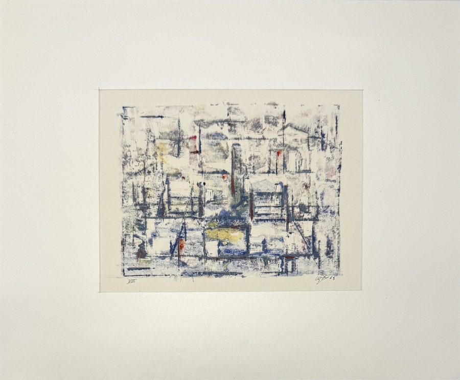 Gemengde techniek door Wobbe Alkema (1900–1984), uitgevoerd op papier in 1963, met abstract-geometrische compositie in blauw, wit, geel en rood. Het werk toont een rasterachtige opbouw met lijnstructuren en kleurvlakken, kenmerkend voor Alkema’s constructivistische stijl uit de jaren zestig. Gemonogrammeerd en gedateerd WA ‘63 rechtsonder, genummerd VII linksonder. Representatief voor zijn latere periode binnen de moderne Nederlandse kunst. Wil je deze gemengde techniek in het echt bekijken? Kom naar de kijkdagen op 28, 29 en 30 november! |