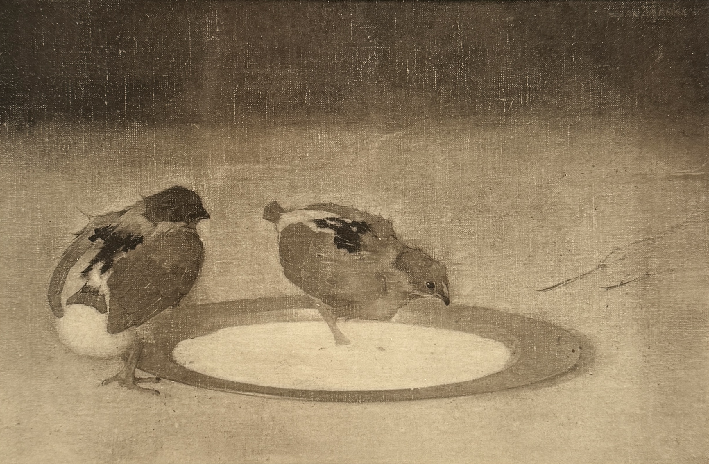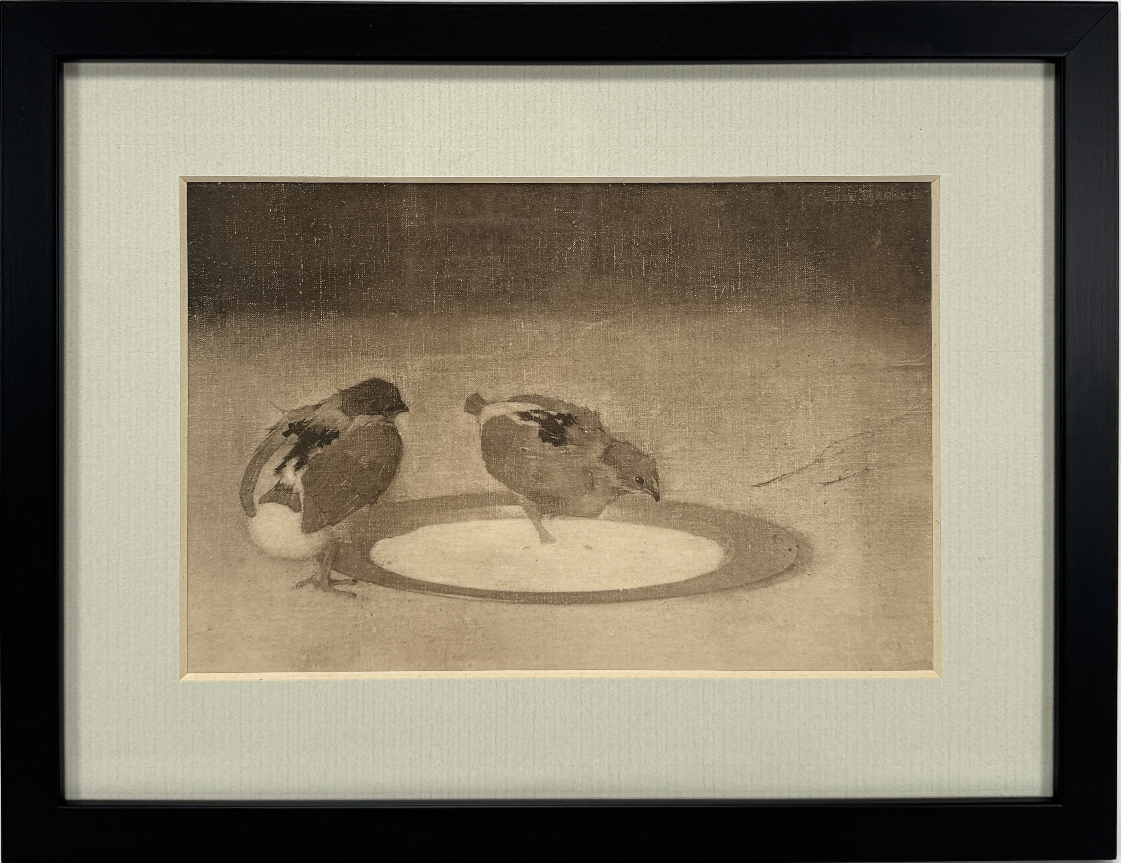 Heliogravure, Jan Mankes – "Twee kuikens op een tinnen bord", 1923
