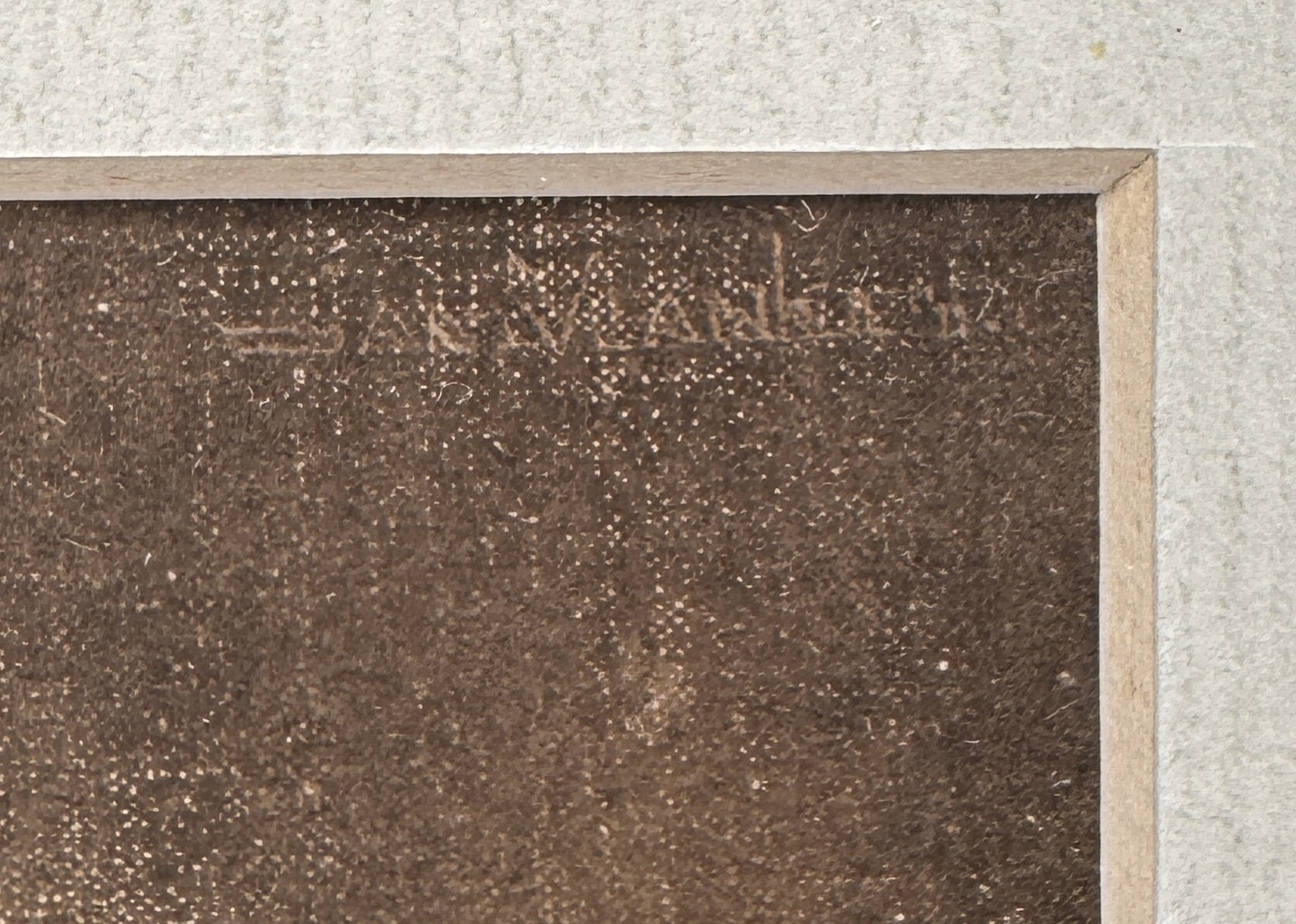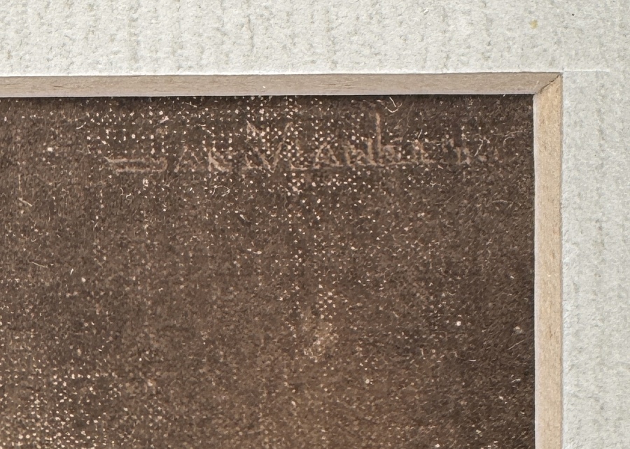 Heliogravure op papier door Jan Mankes (1889–1920), uitgegeven in 1923 naar zijn olieverfschilderij uit 1910 getiteld “Twee kuikens op een tinnen bord”. De voorstelling toont twee kuikens bij een bord in een verstilde, sobere compositie die Mankes’ karakteristieke symbolistische stijl weerspiegelt. Gesigneerd in de plaat rechtsboven, ingelijst achter passe-partout in zwarte houten lijst. Wil je deze heliogravure in het echt bekijken? Kom naar de kijkdagen op 28, 29 en 30 november! |