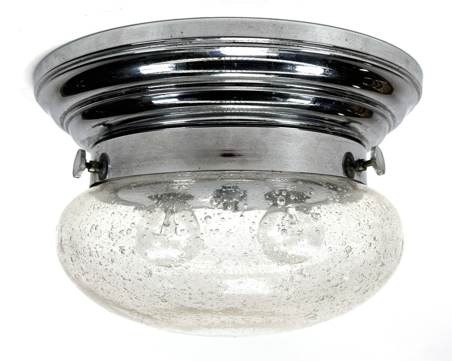 Plafondlamp van de firma Hillebrand, uitgevoerd in verchroomd metaal met bolvormige glazen kap van ‘frosted’ glas met luchtbelstructuur. Ontworpen in modernistische stijl, Duitsland, jaren '60-'70. Zeker zijn van deelname? Plaats vanaf 21 november een schriftelijk bod online! |