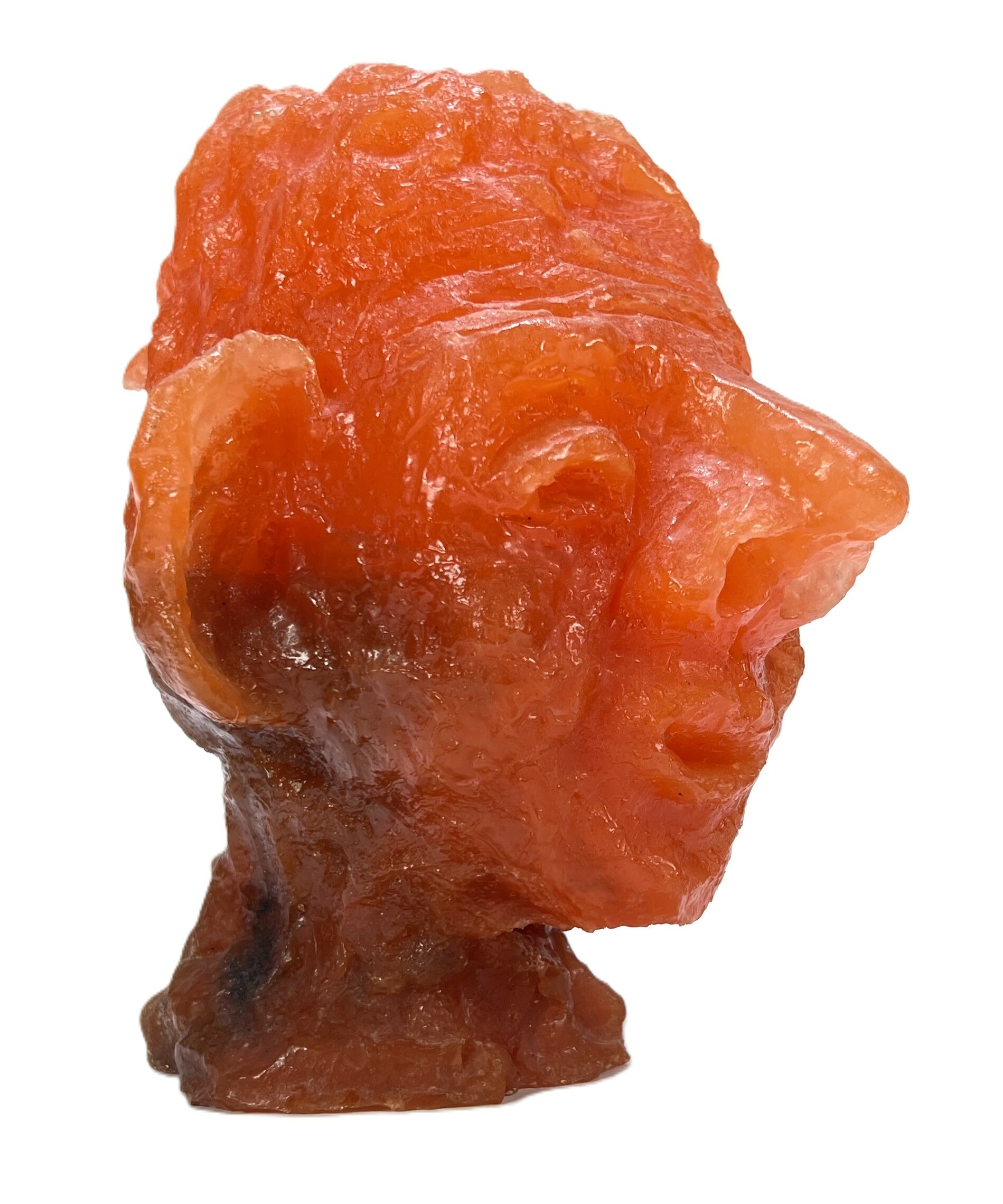Sculptuur door Mathieu Geurts, circa 2015-2025, uitgevoerd in roodoranje kunststof, voorstellend een gestileerd menselijk hoofd met geabstraheerde gelaatstrekken, lange neus, uitgesproken oren en ruwe textuur. Het werk is vervaardigd binnen de context van beeldhouwersvereniging Pietra in Nijmegen en vertegenwoordigt een hedendaagse abstract-figuratieve stijl binnen de Nederlandse moderne beeldhouwkunst. Dit object zelf beoordelen? Je bent welkom op onze kijkdagen op 28, 29 en 30 november! |