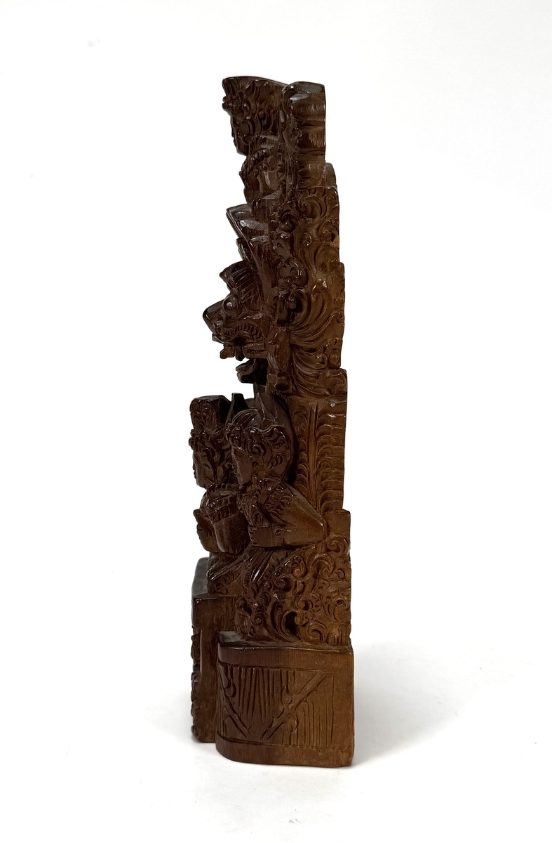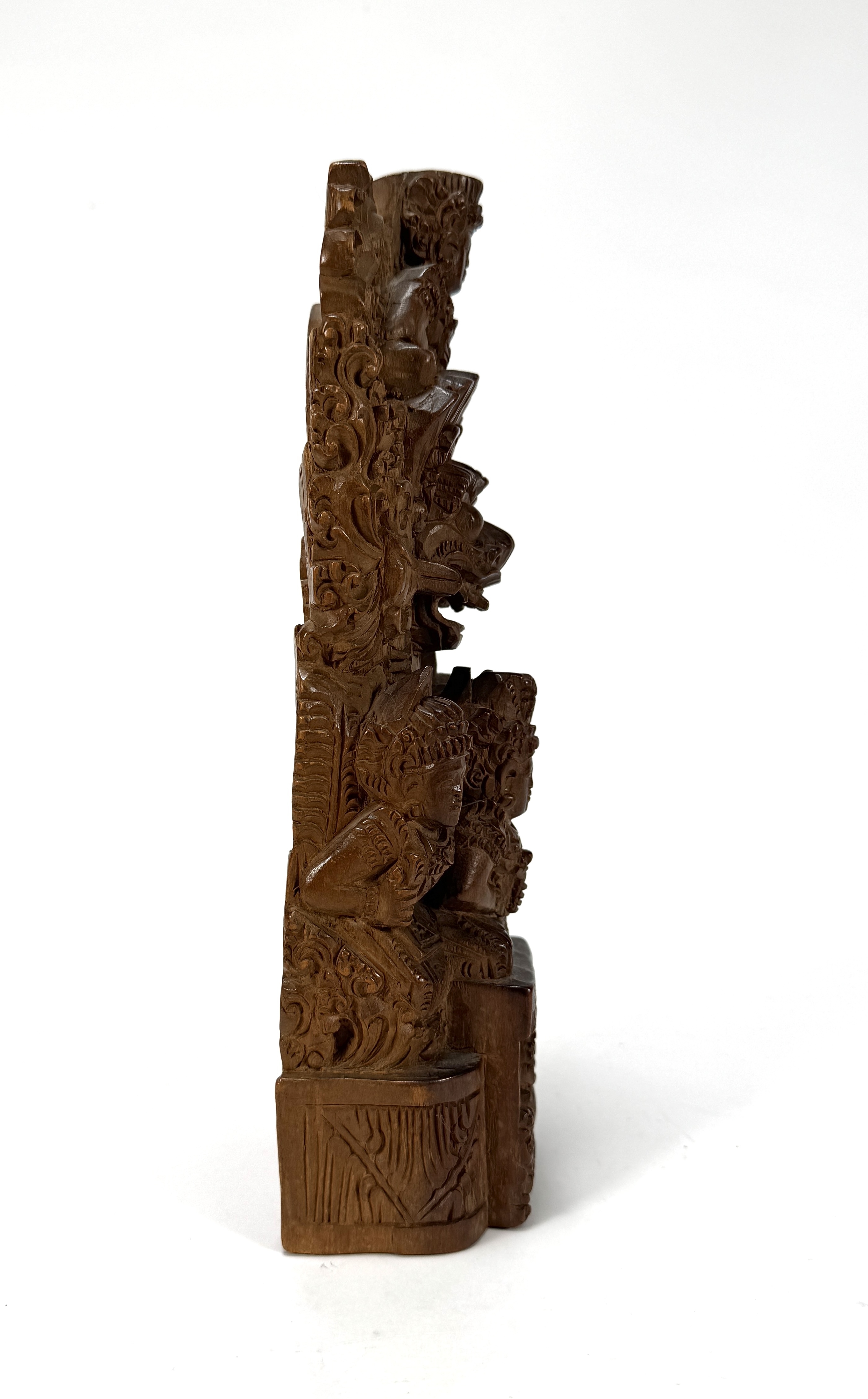Houten beeld, Bali – Barong-figuur met ceremoniële dansers, eerste helft 20e eeuw.