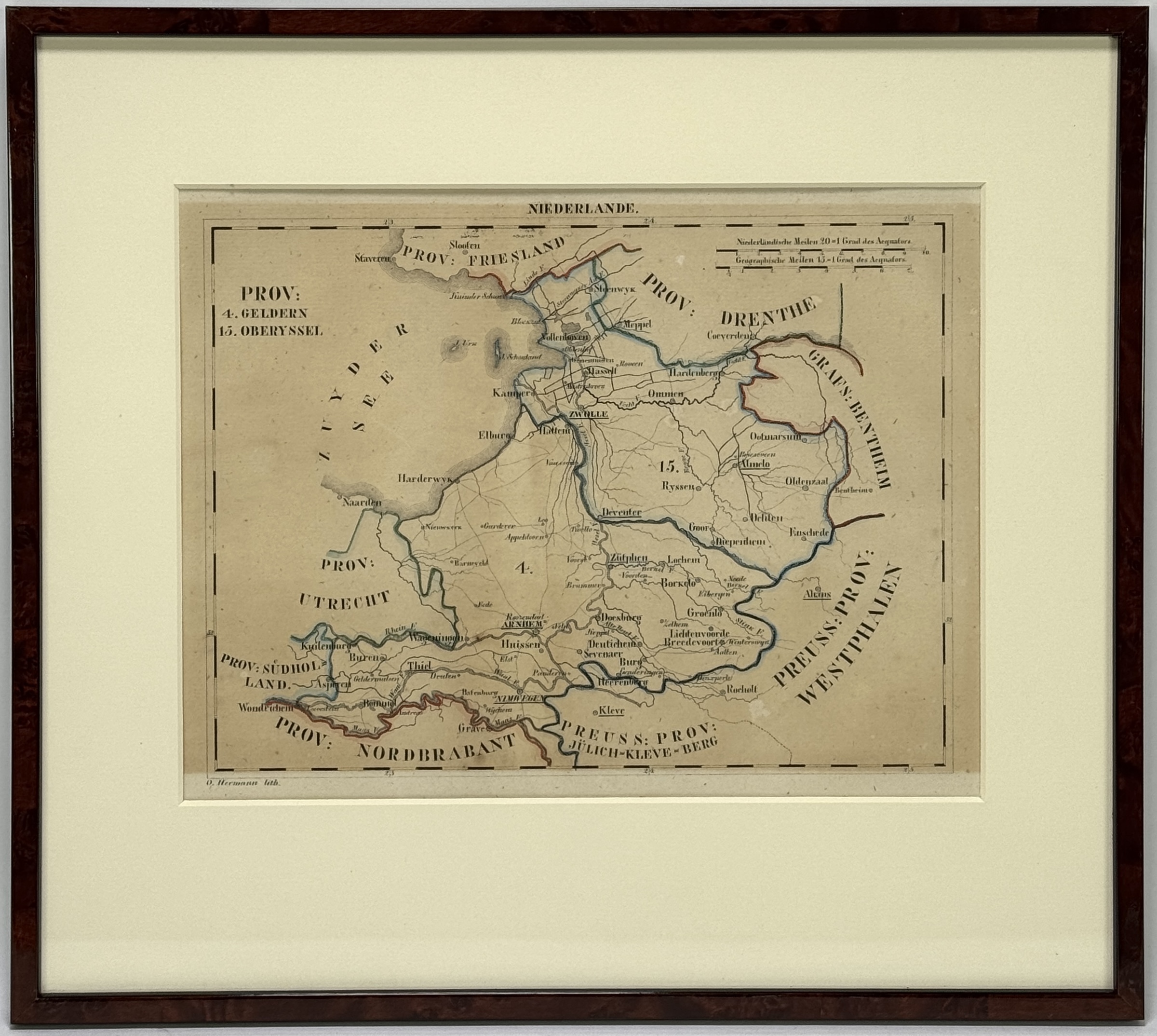 Litho, O. Hermann – Niederlande, kaart van Gelderland en Overijssel, ca. 1850