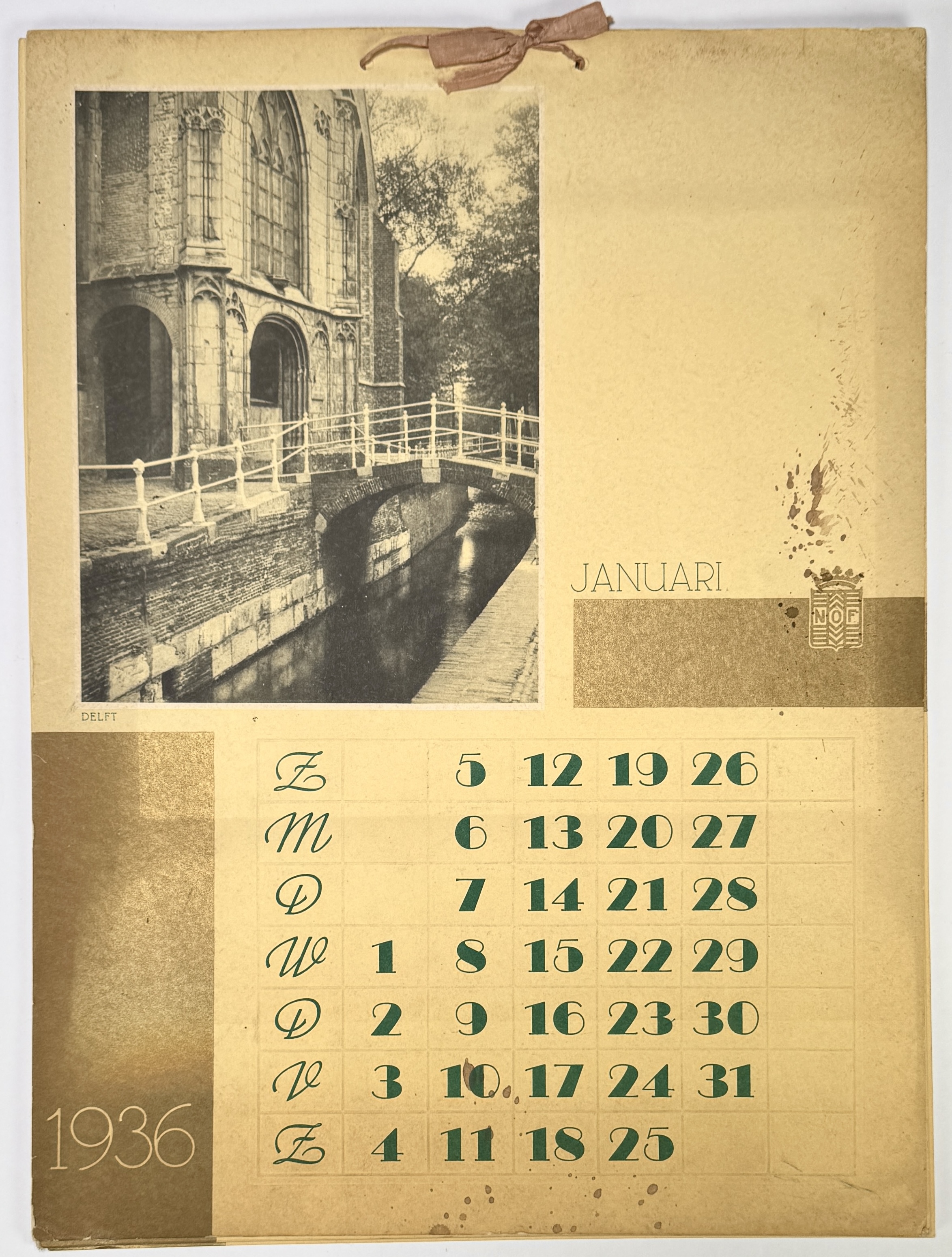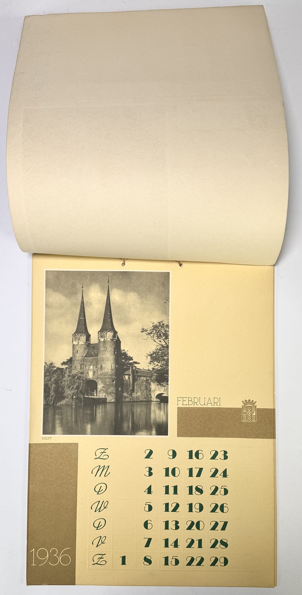 Kalender, N.O.F. – Delft stadsgezicht, Art Deco, 1936, Nederland