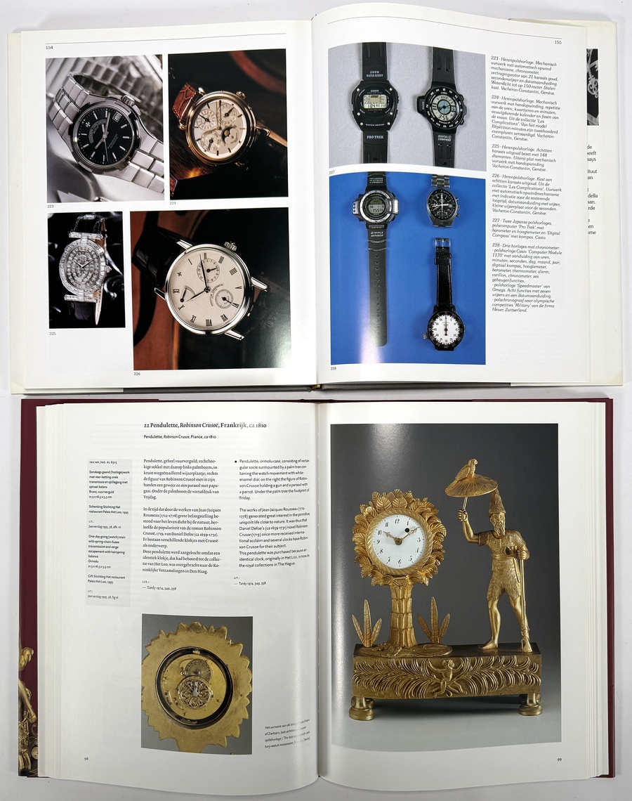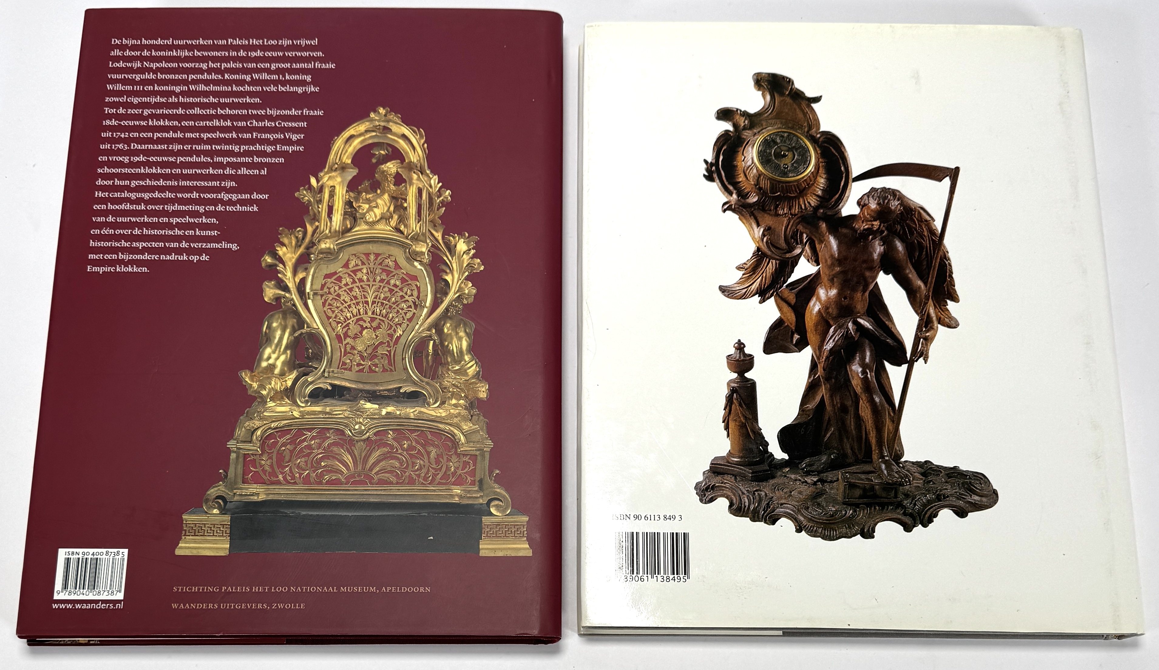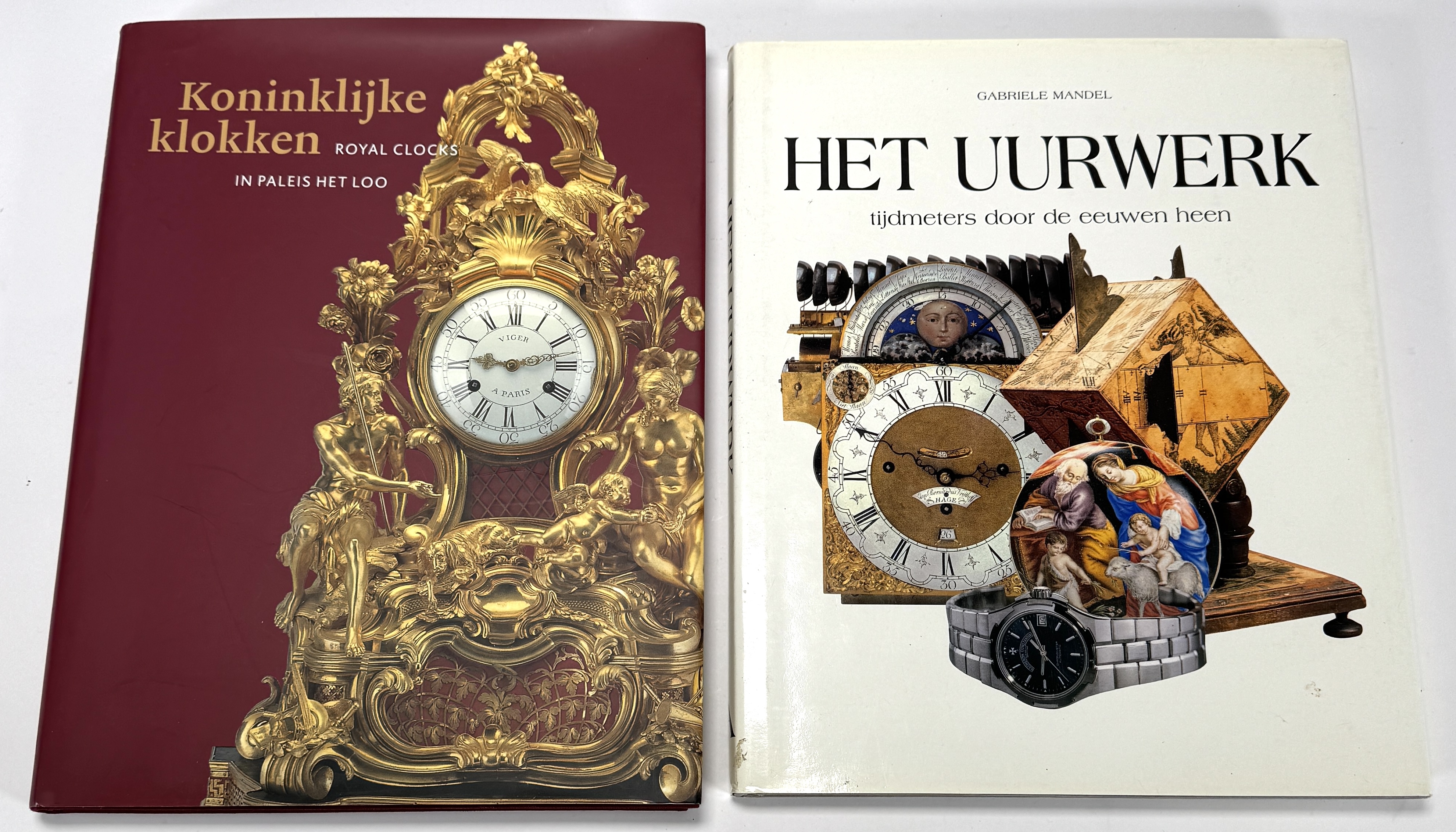 Twee kunsthistorische naslagwerken over uurwerken: Koninklijke klokken – Royal Clocks in Paleis Het Loo (Waanders Uitgevers, Zwolle) en Het Uurwerk – Tijdmeters door de eeuwen heen van Gabriele Mandel. Beide hardcover uitgaven met linnen band en stofomslag, rijk geïllustreerd in kleur met foto’s, technische schema’s en begeleidende teksten over klokken en horloges van de 16e tot 20e eeuw. Jouw kans op deze boeken begint met registreren – bied live of online mee! |