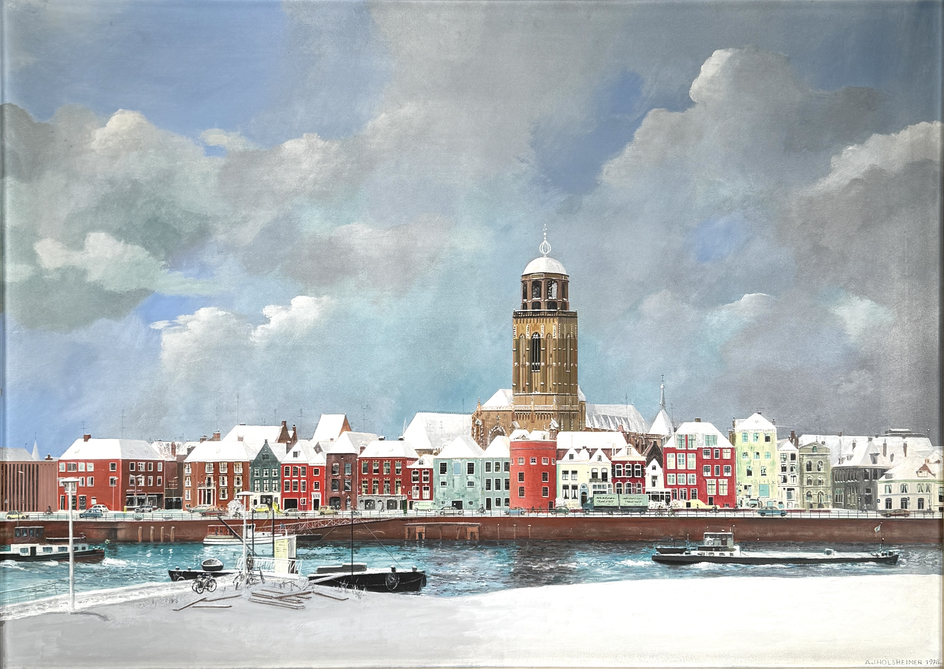 Olieverfschilderij, A.J. Holsheimer – Stadsgezicht Deventer, 1978