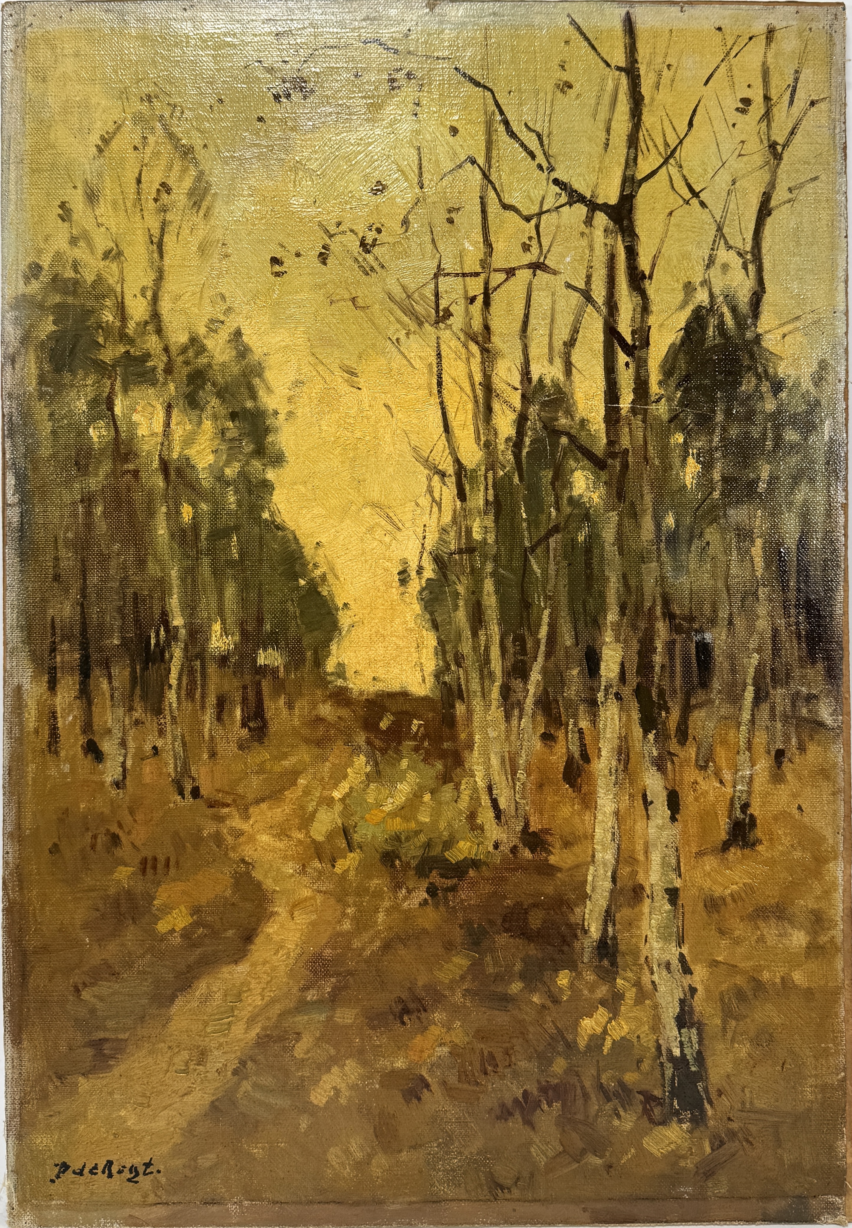 Olieverfschilderij, Piet de Regt – "Berkenlaantje", eerste kwart 20e eeuw, Nederland