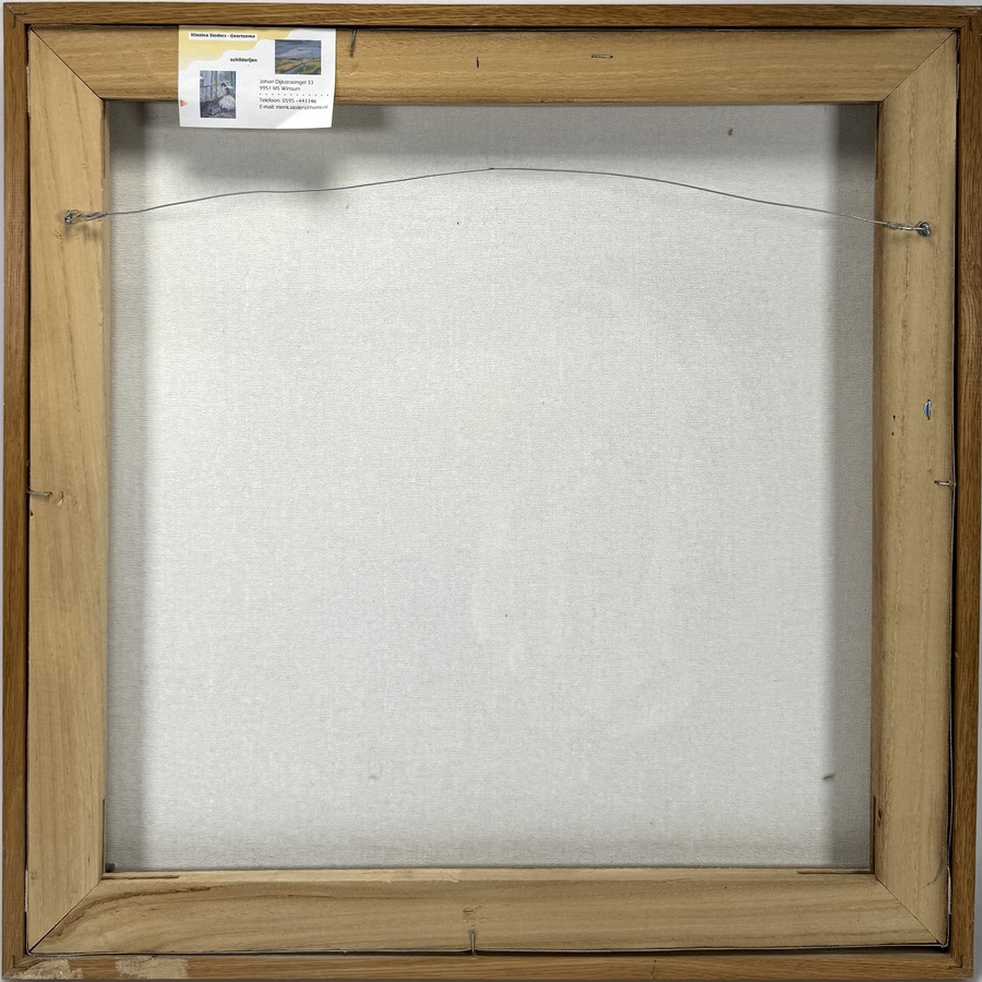 Schilderij van de Nederlandse kunstenares Klazina Sieders - Geertsema, olieverf op doek, in lyrisch abstracte stijl. Het werk uit 2006 toont een atmosferisch horizongezicht gedomineerd door grijze en aardetinten, met een gelaagde impasto verftechniek. De schildering is gemonogrammeerd 'KSG' en gedateerd rechtsonder. De herkomst is Nederland, met een galerie etiket van Groningen. Wil je direct deelnemen? Plaats vanaf 21 november alvast een schriftelijk bod via onze website! |