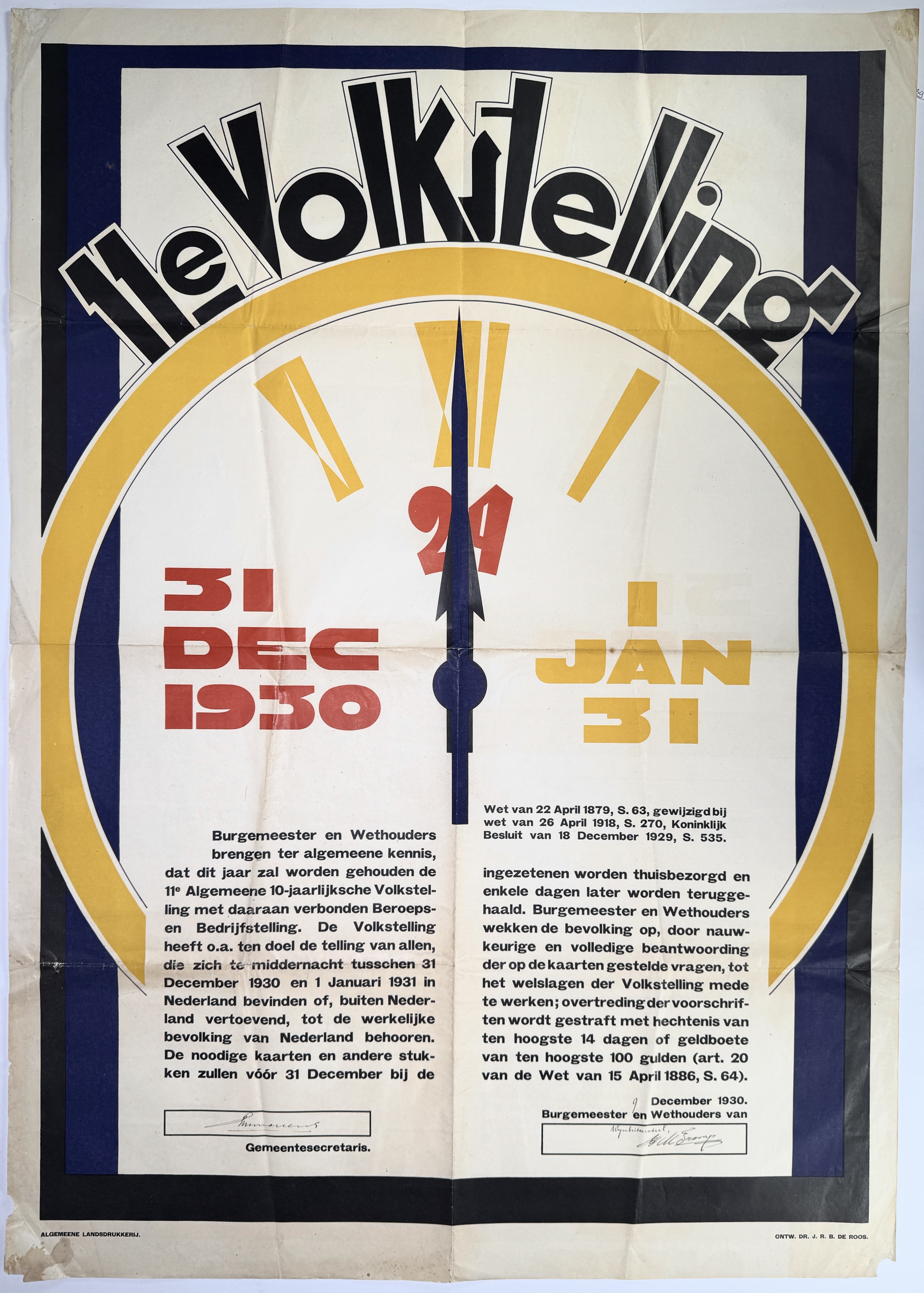 Art Deco poster, Dr. J. R. W. de Roos – "11e Volkstelling", 1930
